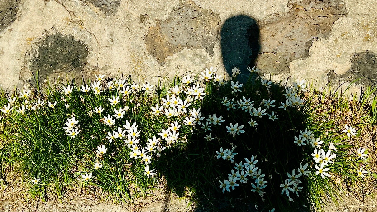 '흰꽃나도사프란'은 나도사프란을 닮았다고 붙여진 이름이다. 이 계절에 제주도 전역에 마을 어귀마다 여기저기 볼 수 있는 흔한 꽃이다. 남부지방에도 저절로 자라나는 야생화로 여러해살이 풀이다. 꽃 속으로 자신과 함께 찍어본다.