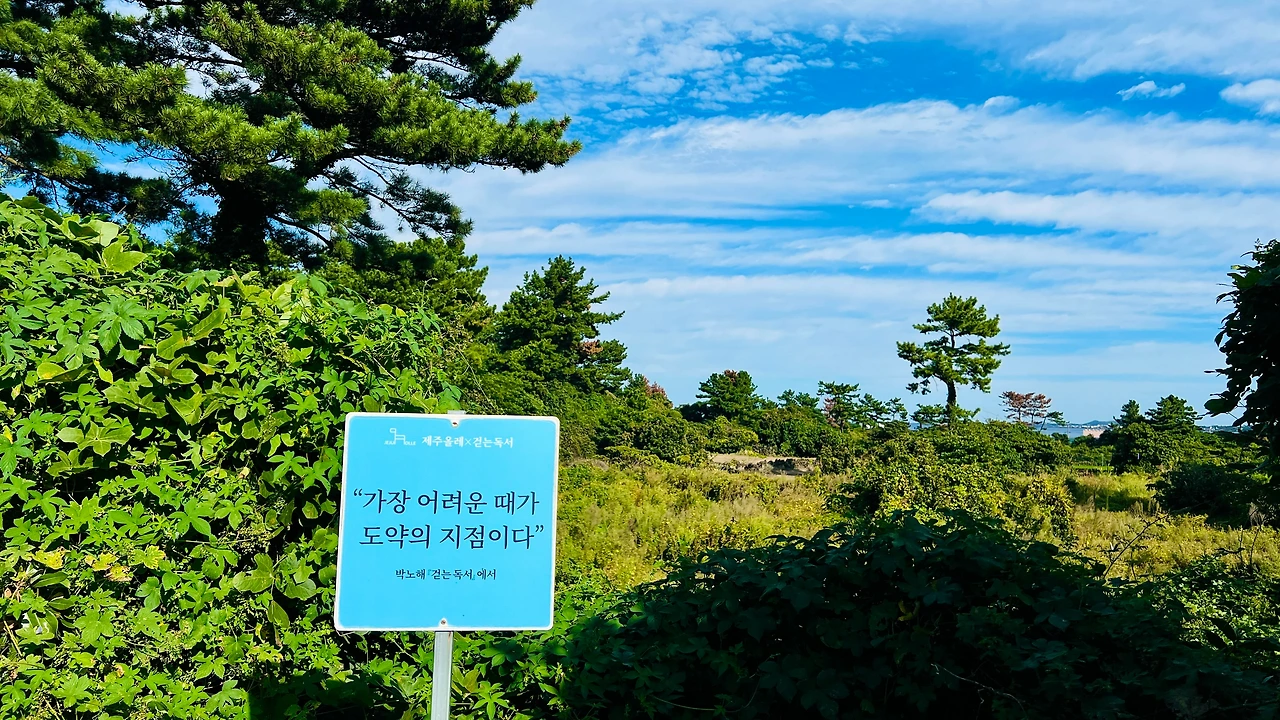 환해장성터를 볼 때마다 그 돌무더기를 만든 이들은 적어도 몇백 년에서 천 년 전의 사람들이었고 얼마나 많은 수고와 땀으로 쌓아 올렸을까를 생각해 본다. 미래를 생각하고 자손을 생각하고 자신들의 가족과 마을을 생각했을 터이다. 올레길을 걷다 보면 그들의 숨결을 느끼고 싶다면 저 돌덩어리와 바위에 잠시 손을 대고 그들의 숨소리를 눈을 감고 들어보라.