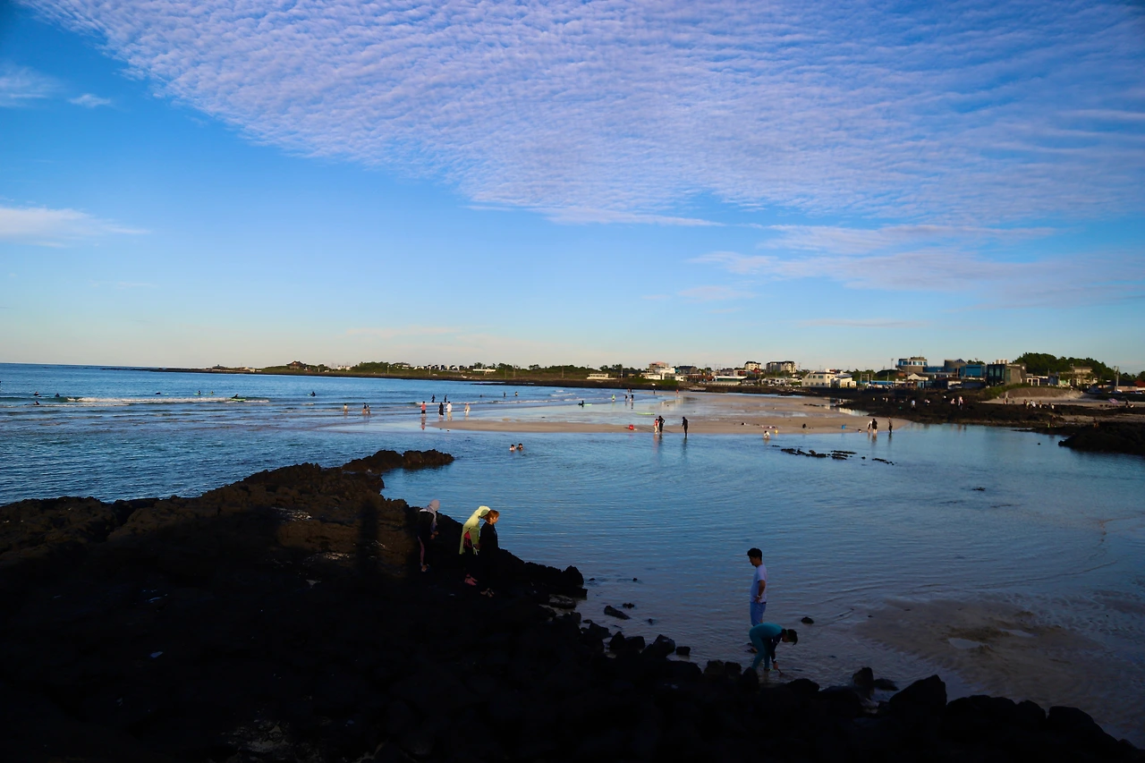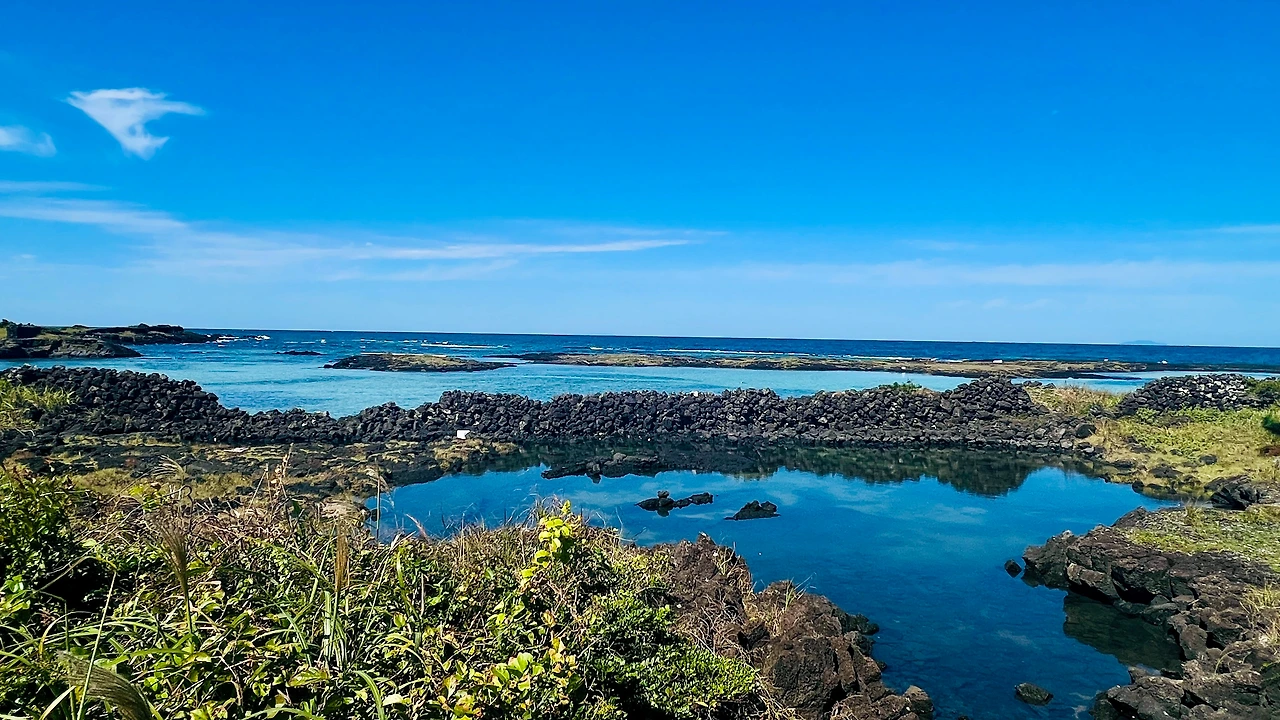 오후 시간이 썰물 때가 물이 나가고 난 후에 바닷가에 앙상한 해변의 바위들이 보이기 시작한다. 오전에는 물이 들어오는 시간이기에 아침 일찍 해변을 나가면 밀물에 이런 해변을 볼 수가 없다. 그렇다고 오전에 일찍 돌고 오후 2-3시에 끝나면 태양빛으로 인해 아름다운 풍경을 담기에는 부족함이 있다. 맑은 날들의 제주 바닷가는 파랑을 담기에도 좋지만 올레길 밭길 위의 푸른 새싹이나 곶자왈의 숲 속을 담기에도 좋다.