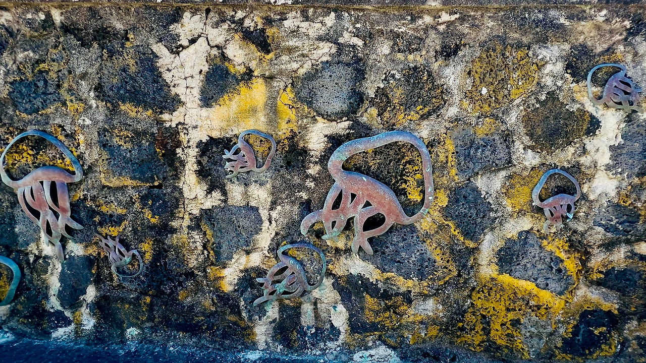 시간이 오전이라 밀물이 들어온 후였다. 아직은 들어오는 타임이라 동네까지 물이 가득 차 있다. 김녕을 시작으로 성세기 해변까지 3km에 걸쳐 10명의 예술가들이 버려지는 금속제품과 제주 현무암을 이용하여 금속벽화마을로 만들었다. 다른 벽화마을과는 달리 금속과 현무암을 콜라보하며 만들어진 29점의 금속벽화를 만나 볼 수 있다.