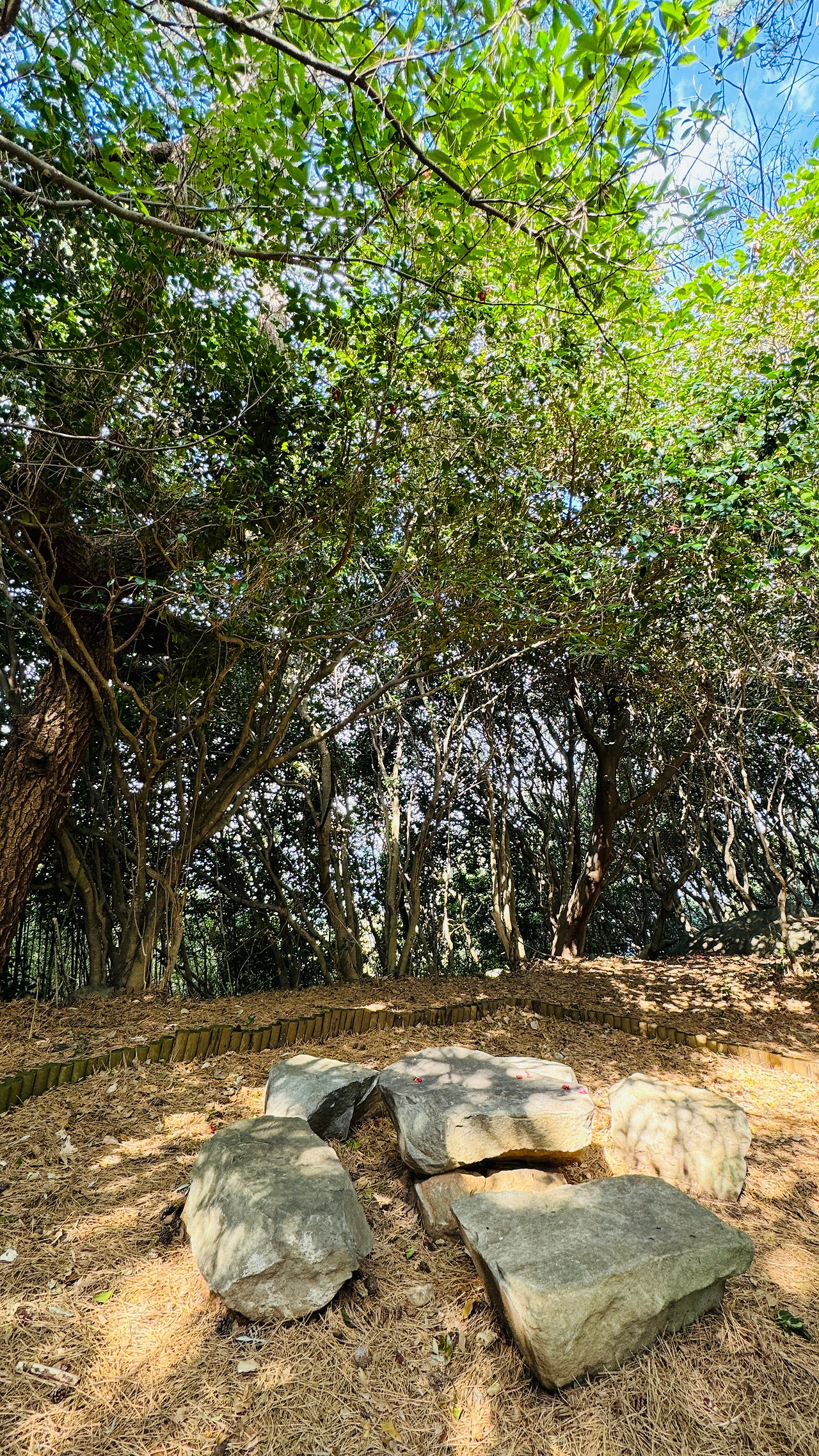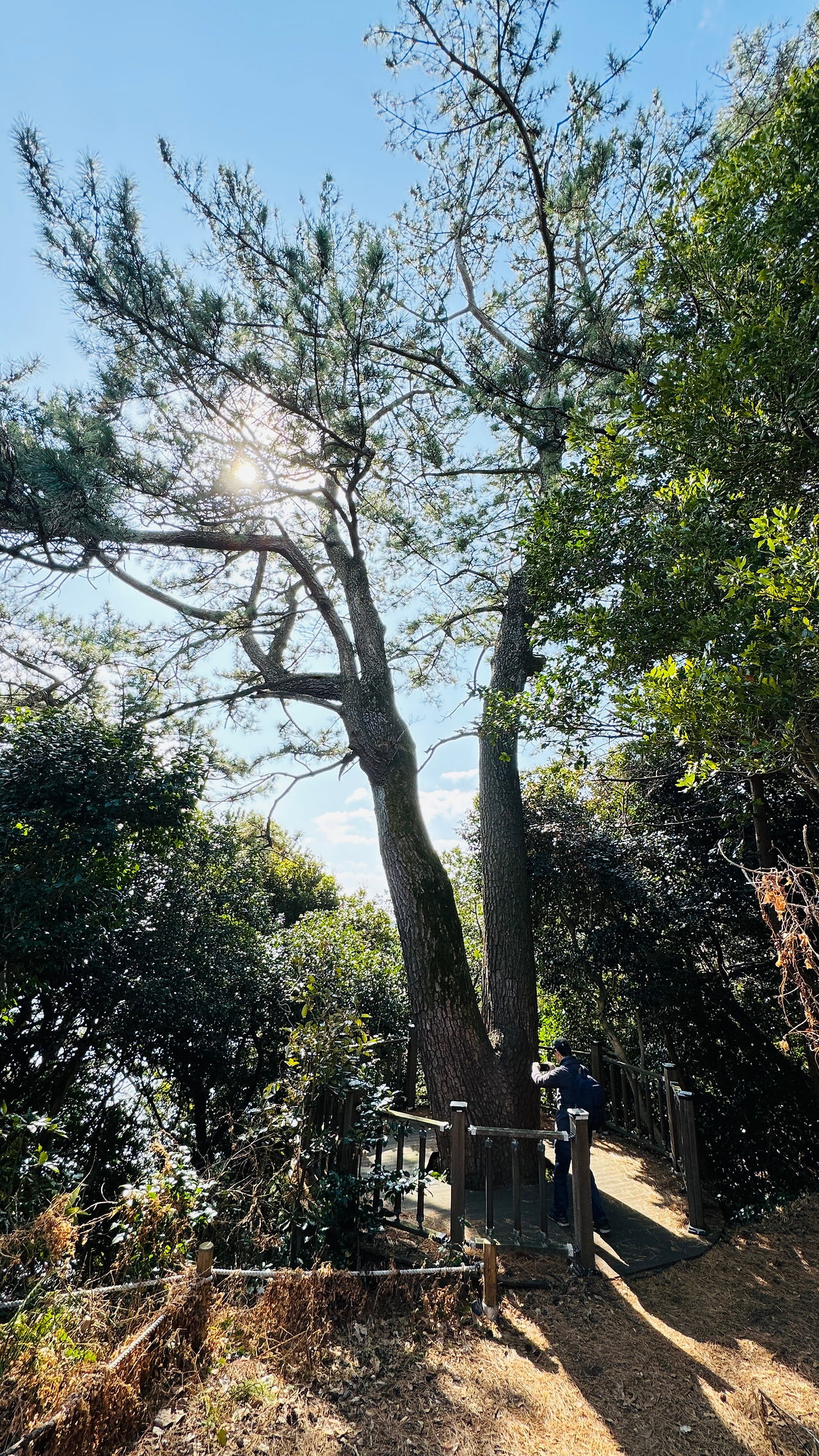 소나무 연리지가 묵묵히 지심도를 지키고 있다. 진지 구축하여 포대를 숨기기 위하여 심었던 소나무들이 지금은 지심도를 아름답게 지키고 있는 소나무들로 가려져 자라고 있다.