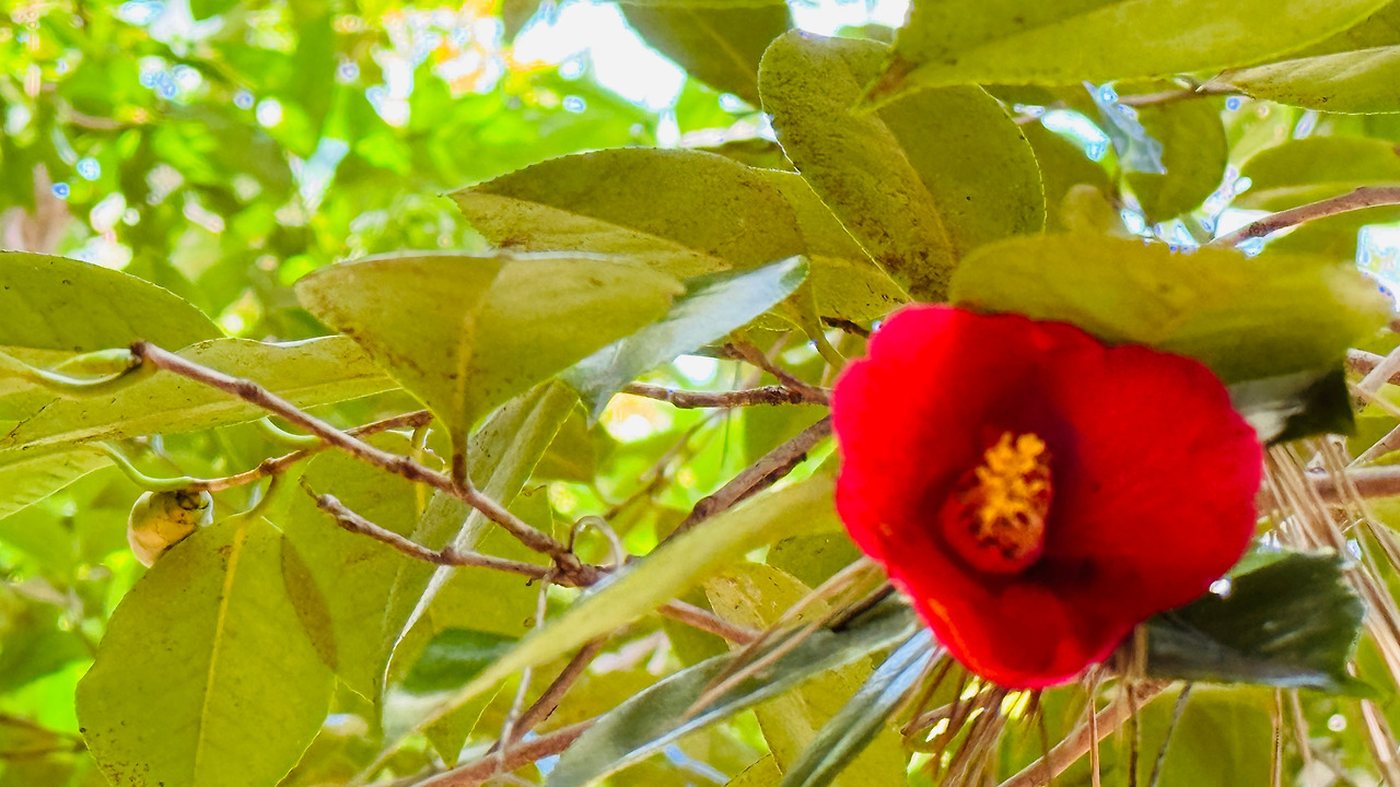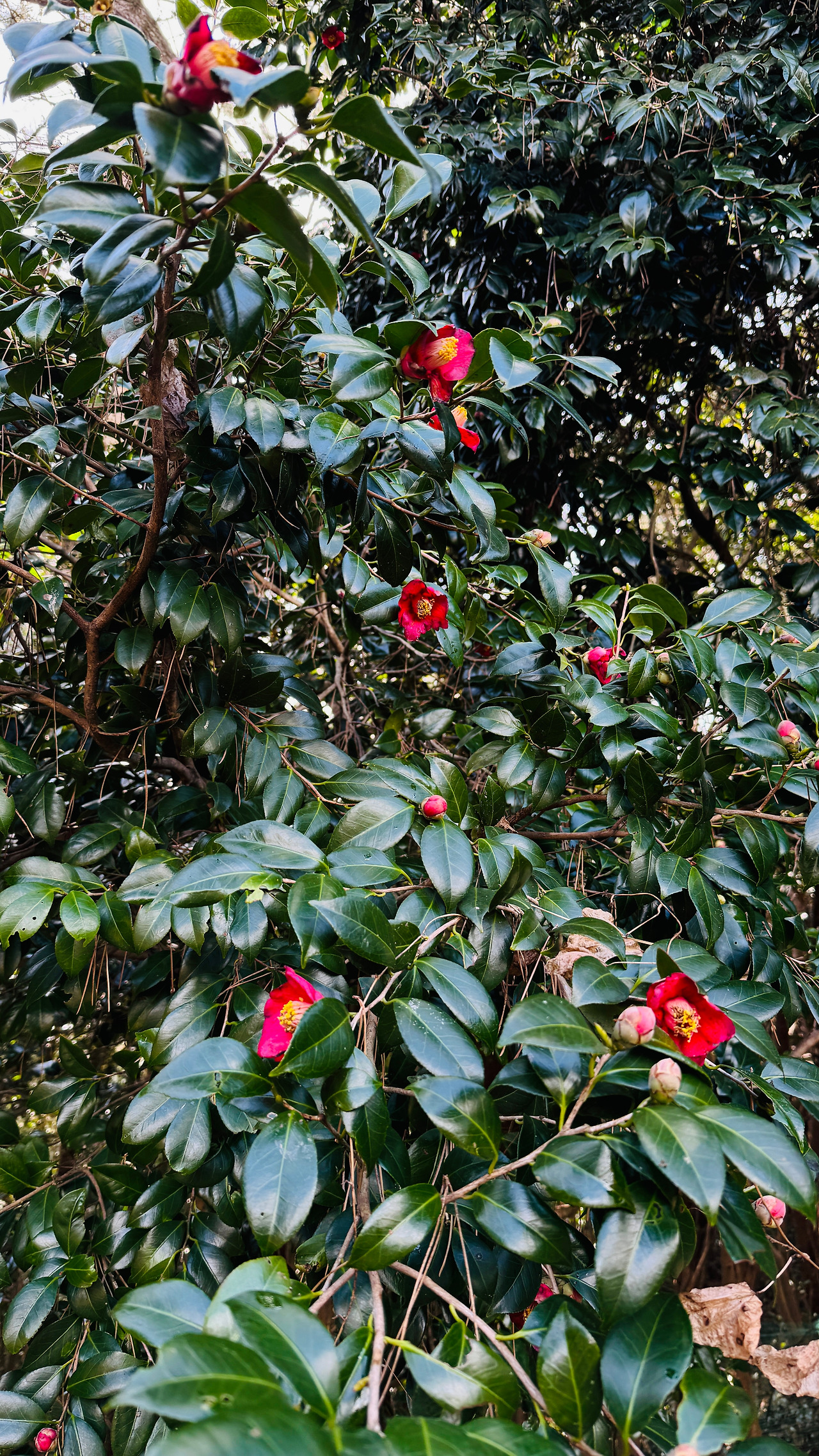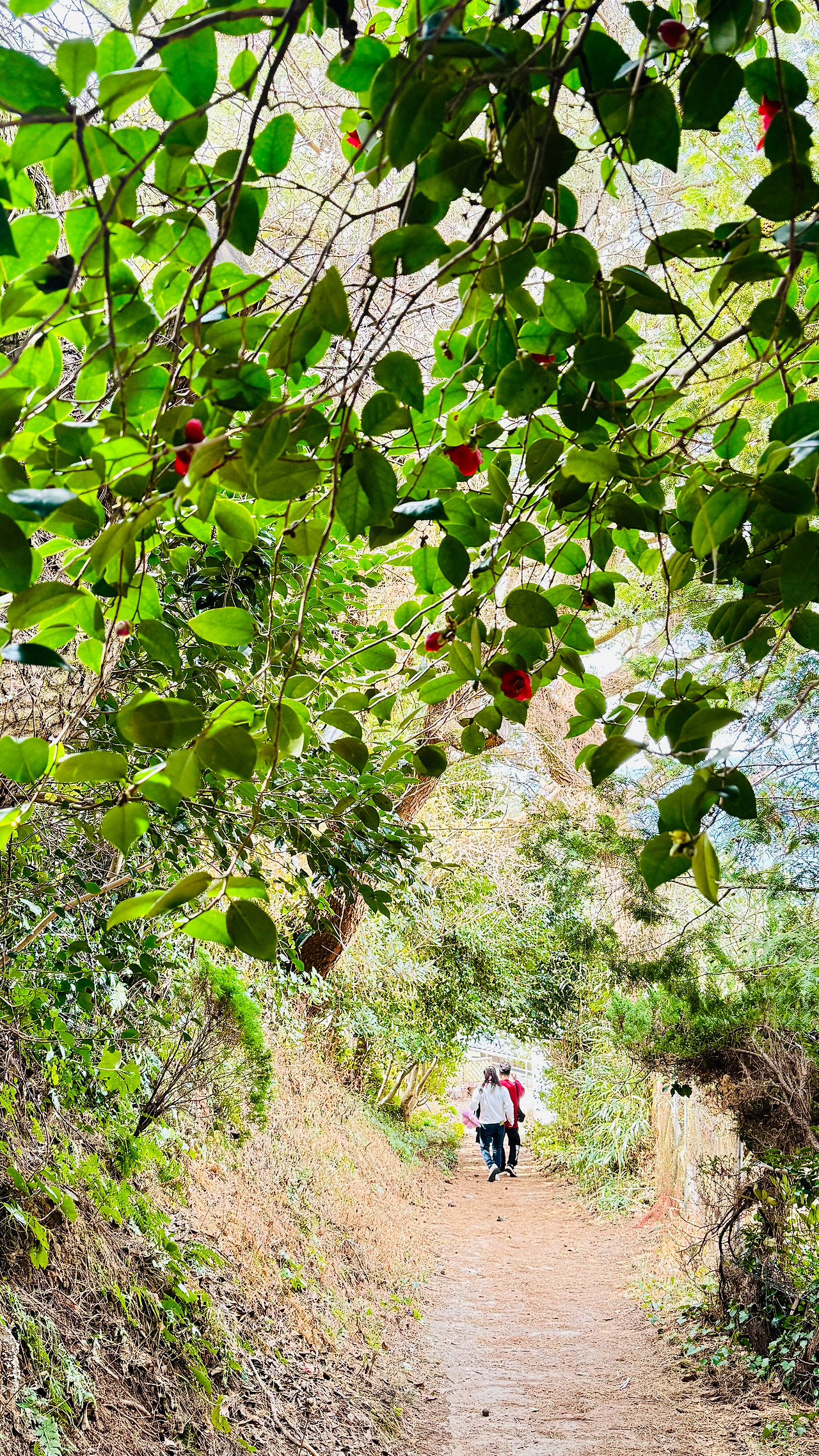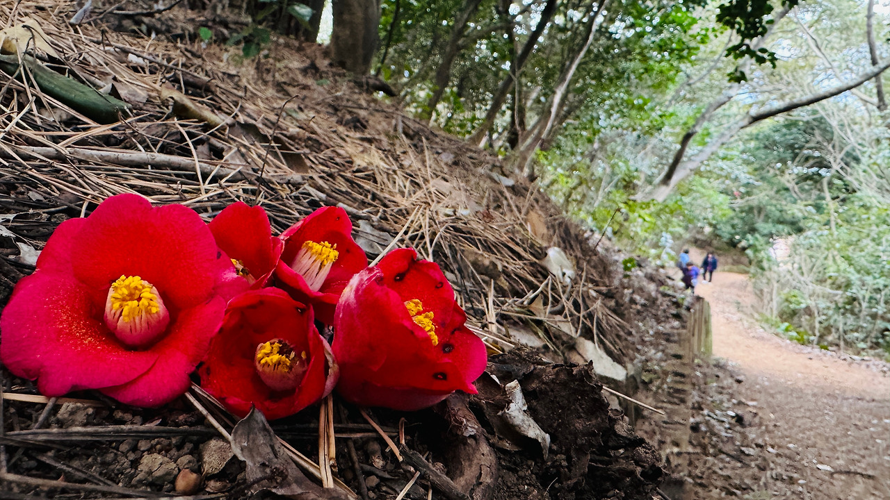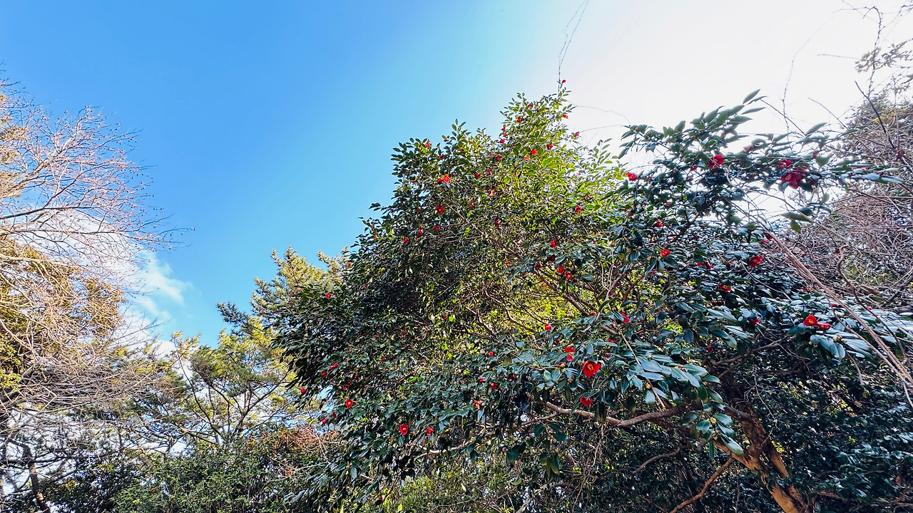 매표소 아저씨가 말씀하신 것처럼 동백이 만개한 것은 아지만 듬성듬성 동백이 자리를 탐하지 않고 순서대로 피어나가는 모습을 볼 수 있는 2월 중순의 지심도 동백나무들이다.