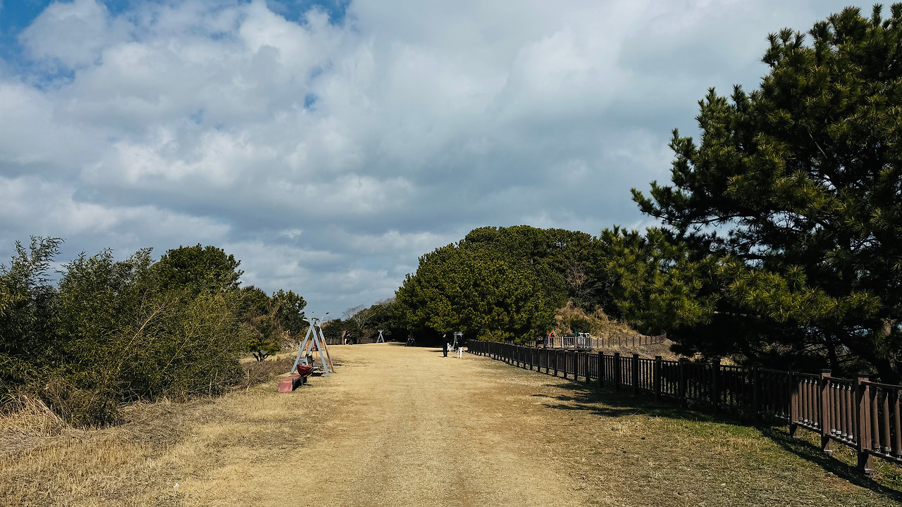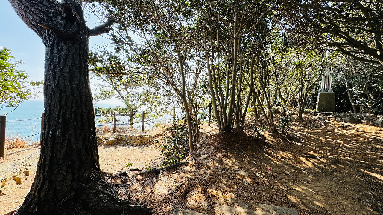 일제는 지심도 일대 토지를 매입하고 주민을 강제 이주 시킨다. 지심도는 1개 중대 300여 명이 주둔해 1941년 태평양 전쟁 당시 양지암 기지와 함께 연합군 공격에 대응한다. 위의 터는 '비행장'으로 알려져 있다. 활주로라 하기에는 짧은 감은 있지만 얼마든지 이착륙을 불시착할 수 있었으리라 생각한다. 물론 기록은 없지만 비행장을 만들다 말았다는 기록은 있다고 한다.