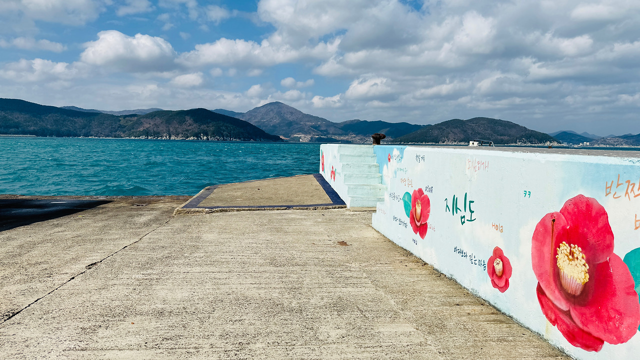 지심도에 도착하면 선착장에는 동백 그림이 가득하다. 여수 오동도에 방파제에 그려놓은 동백 그림과 사뭇 닮음이 있다. 물론 오동도의 동백나무도 수령이 오래되고 키가 크기도 해서 떼를 지어 붉은 꽃들이 함께 피지 않는다. 동백들은 서로들 다투어서 함께 피지 않고 옆의 피는 꽃들에게 순서를 양보하면서 피기에 무리를 지어 피지 않는다.