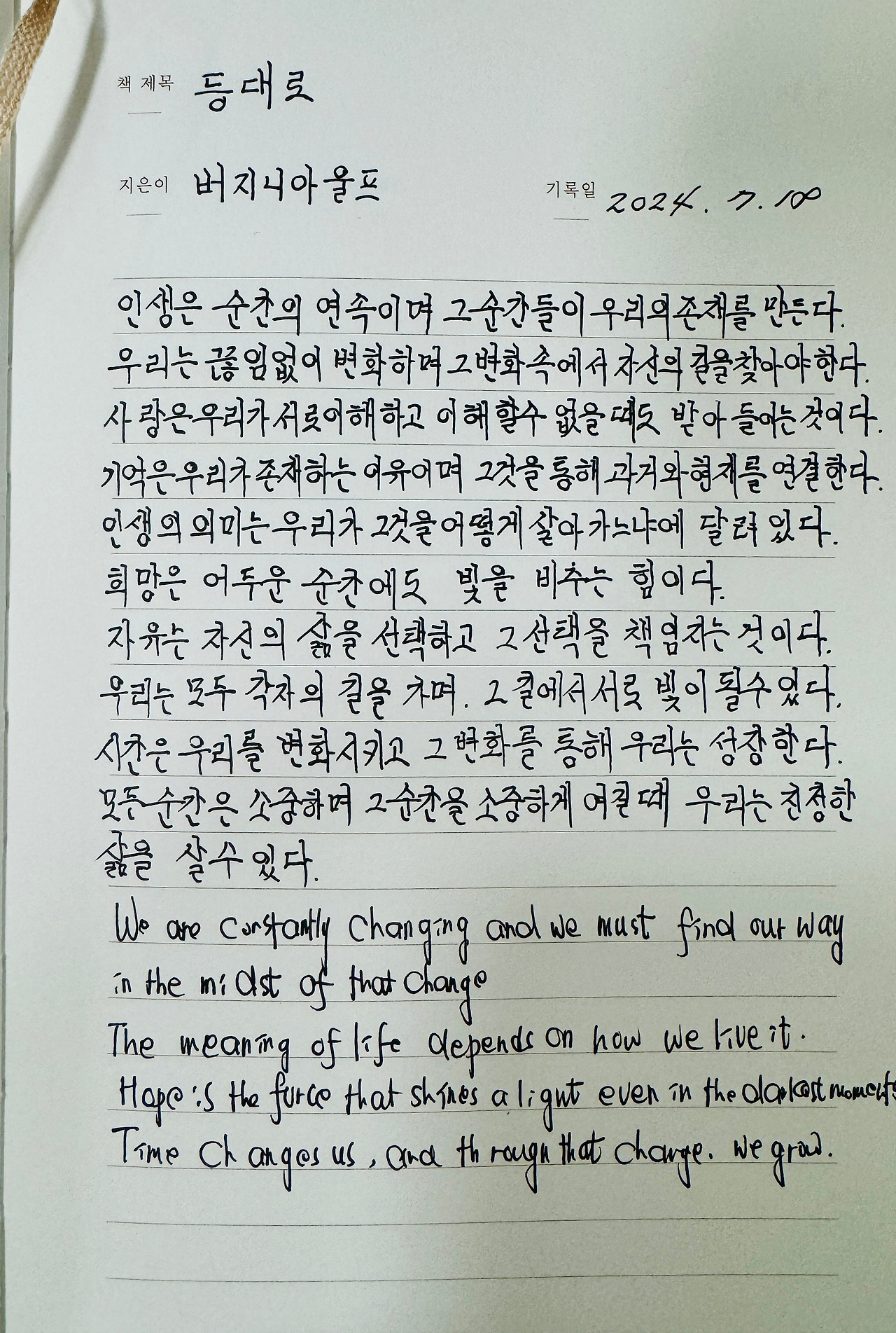 울프의 『등대로』는 우리에게 이러한 중요한 가르침을 전해줍니다. 등대가 멀리서 빛을 발하며 배들에게 방향을 제시하듯이, 우리도 삶 속에서 흔들리지 않는 가치를 찾아, 그 빛을 따라 나아가야 합니다. 그 빛은 바로 우리의 사랑과 진실, 그리고 예술과 인간 관계의 힘에서 나오는 것입니다.