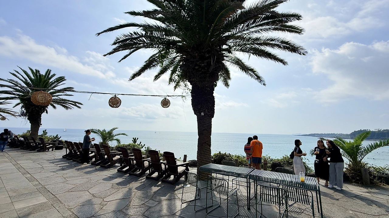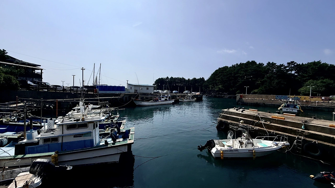 대포포구-해녀들이 바다로 들어가는 포구로, 지금은 카페거리와 주상절리 전망대가 유명하다. 바로 옆 대포 주상절리대는 현무암 용암이 식어 만들어진 5각형 기둥 절벽으로, 천연기념물 제443호이다. 사진 포인트: 주상절리 전망대 난간에서 바라본 파도와 절벽