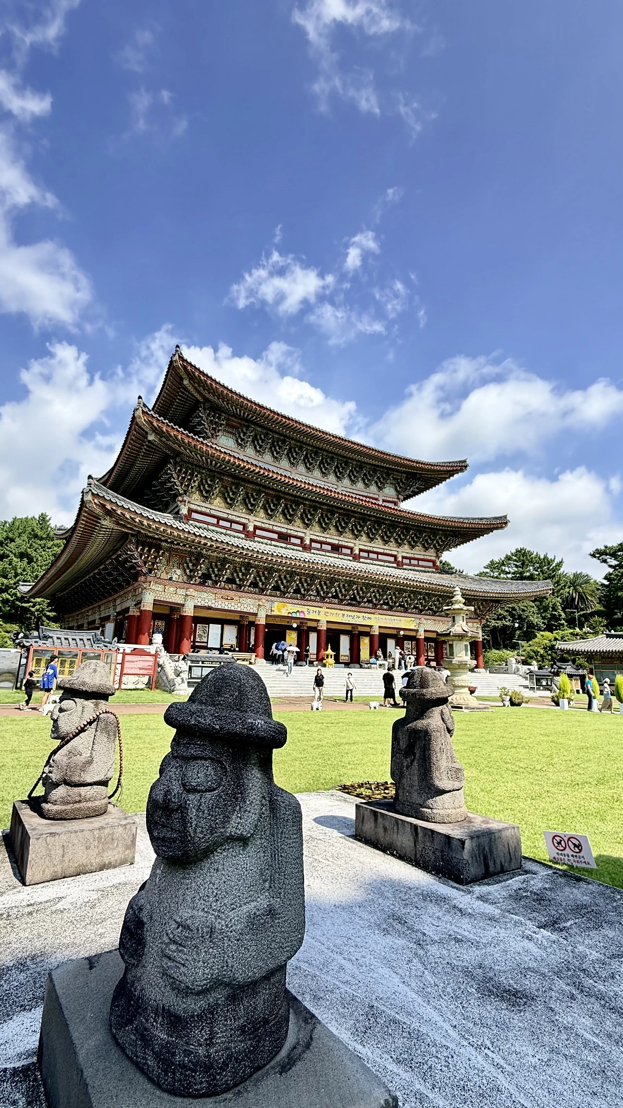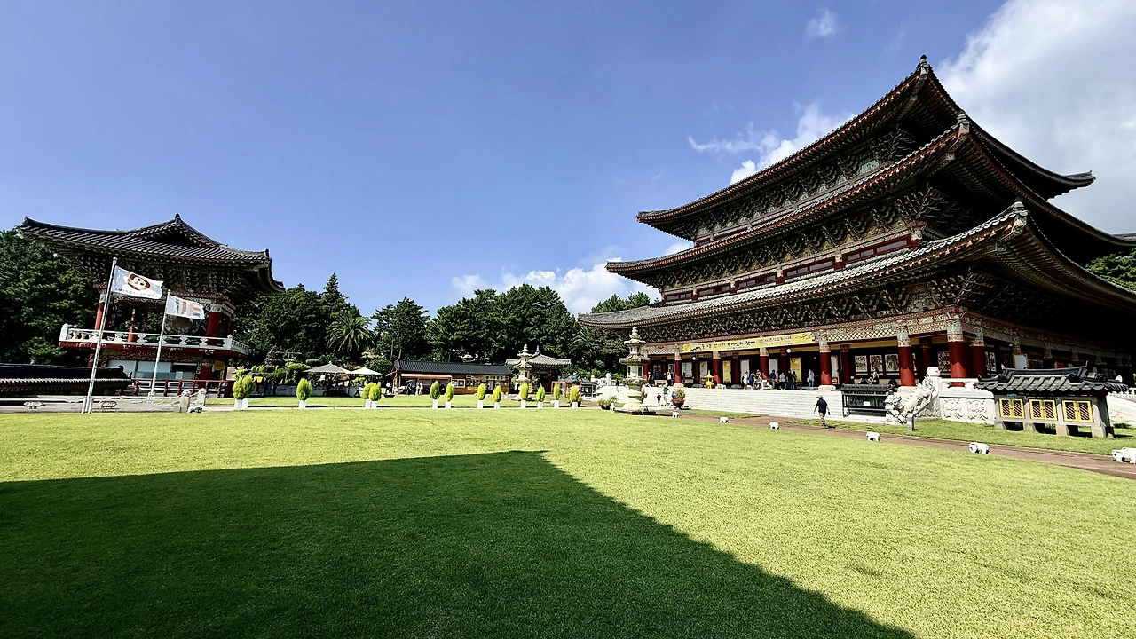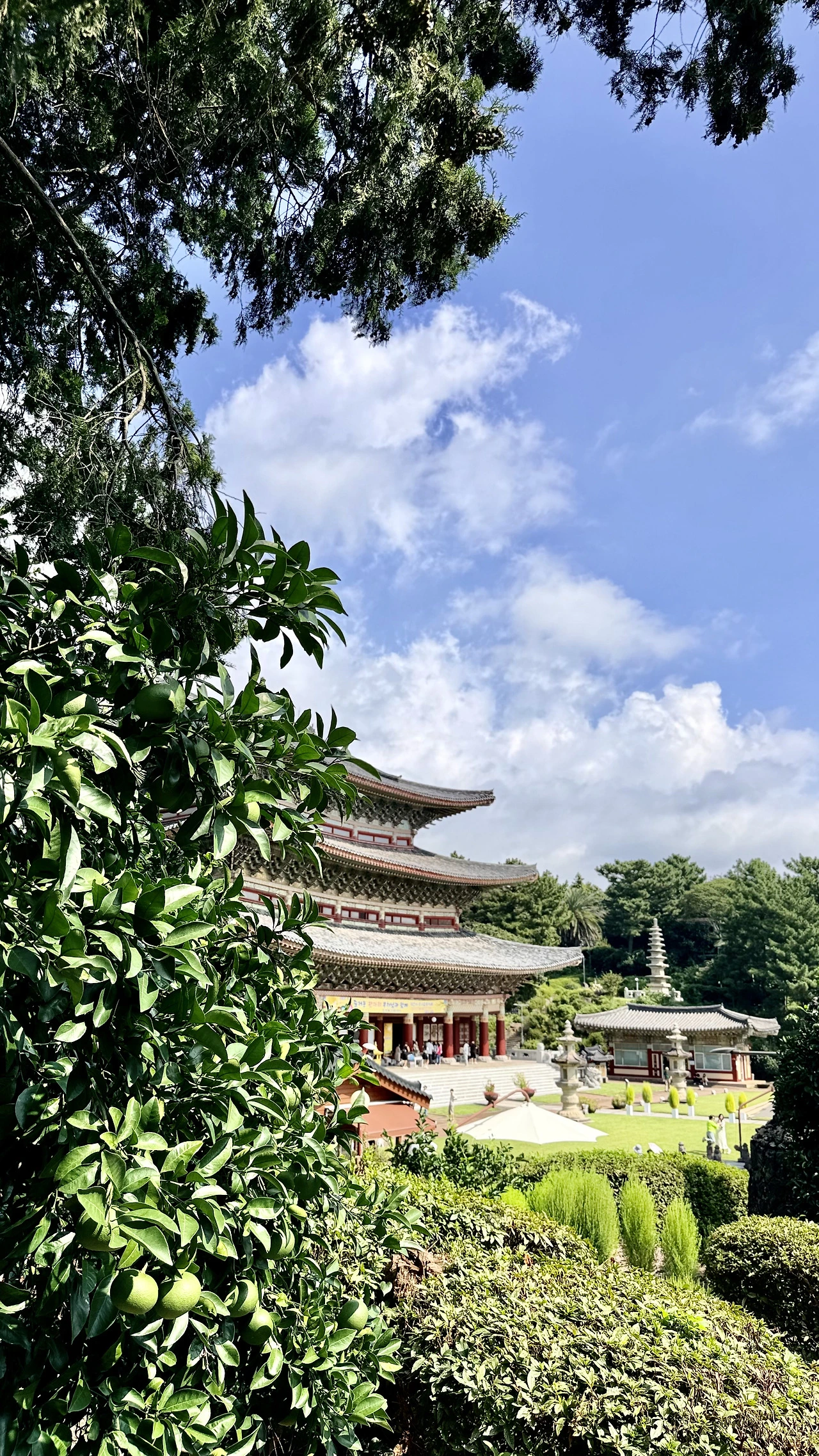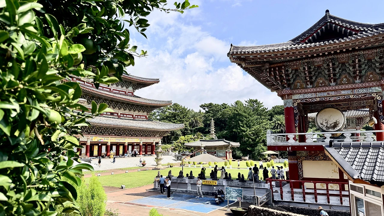 약천사-동양 최대 규모의 사찰 중 하나로, 화려한 3층 대웅전과 남국식 석탑이 인상적이다. 사찰 이름의 ‘약(藥)’은 ‘치유의 물’이라는 뜻이다. 제주 4·3 당시에도 이 일대 마을 주민들이 피난처로 삼았던 곳이라 한다.
