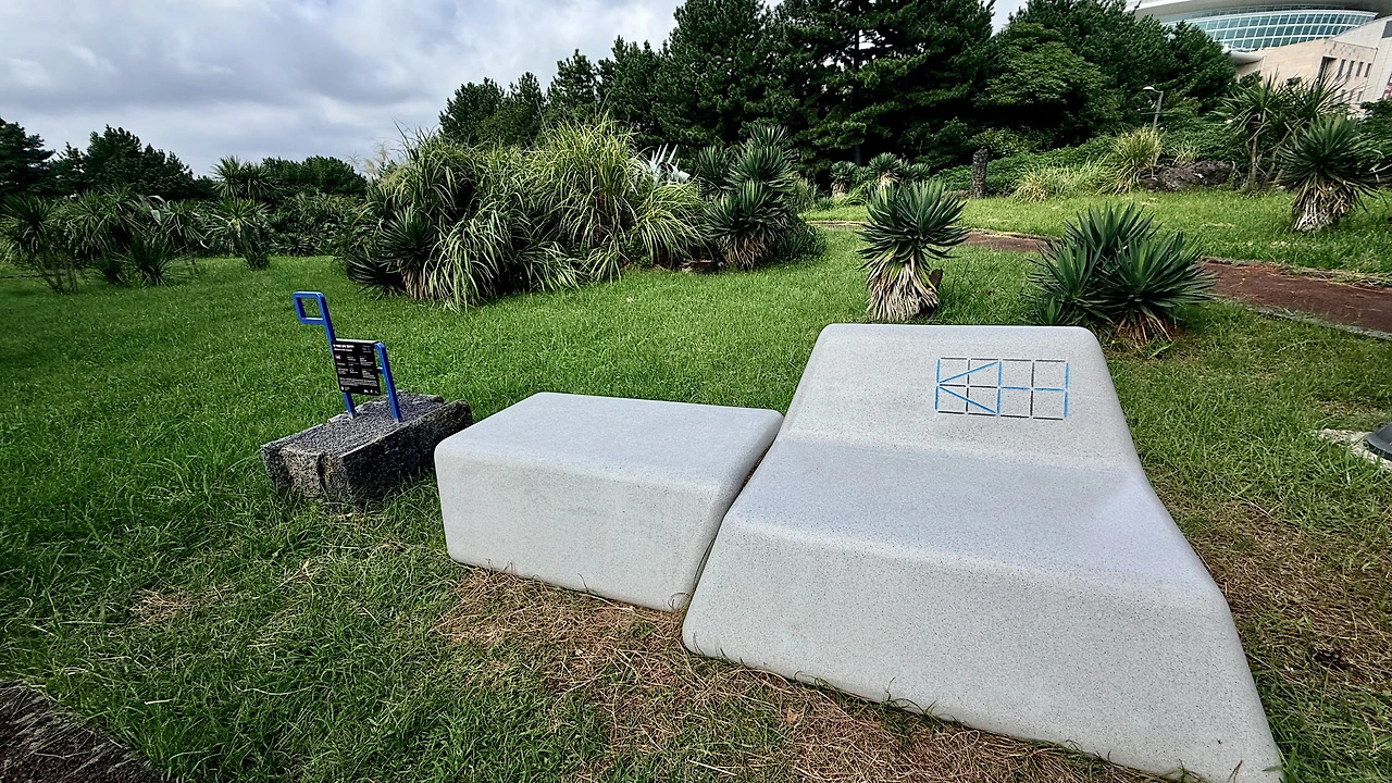 예럐 생태공원가는 길에 중간 스탬프가 있다. 이 언덕을 넘어가면 거대한 요트를 배경으로 사진을 찍는 곳이 있는데 계단을 오를수도 있고, 에르베이트를 이용할 수 있다. 이쯤에 오면 많이 지치는 구간이기도 하다.