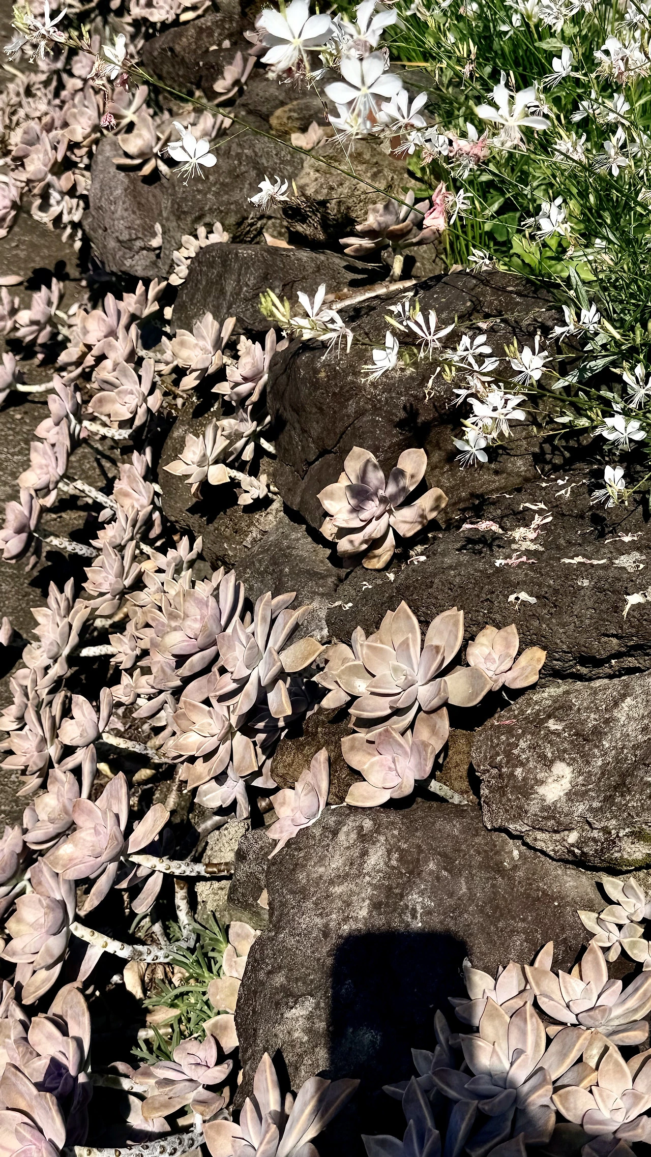 다육식물들이 담벼락이나 그 돌담에 여기저기 별모양으로 성장해서 쑥쑥 자란다. 겨울에도 이 다육들은 찬바람과 제주의 시간이 퍽이나 좋은가 보다.