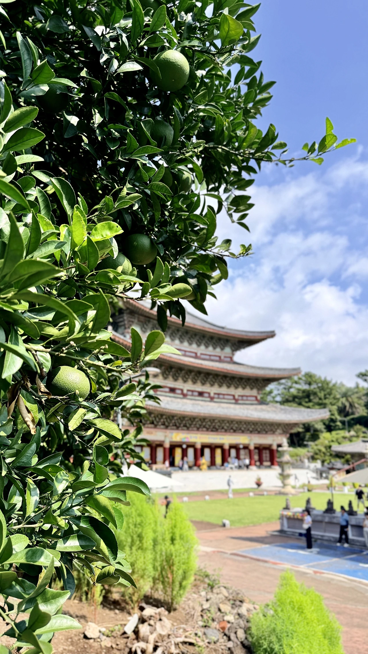 밀감나무와 함께 절건물이 조화를 이룬다. 왠지 안 어울릴 것 같은 느낌은 익숙하지 않은 세상에 나온 소재들이라 그런지 모른다.