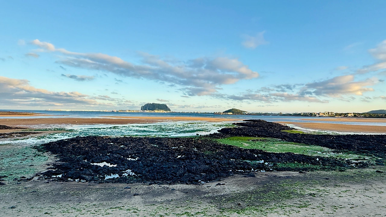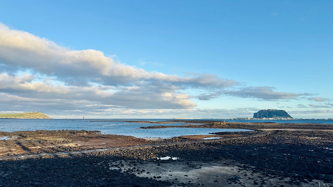 종달 해변을 따라 오면 왼쪽에 성산포가 계속 보인다. 성산포에 다가 갈 수 있지만 아쉽게도 해가 지려고 한다.