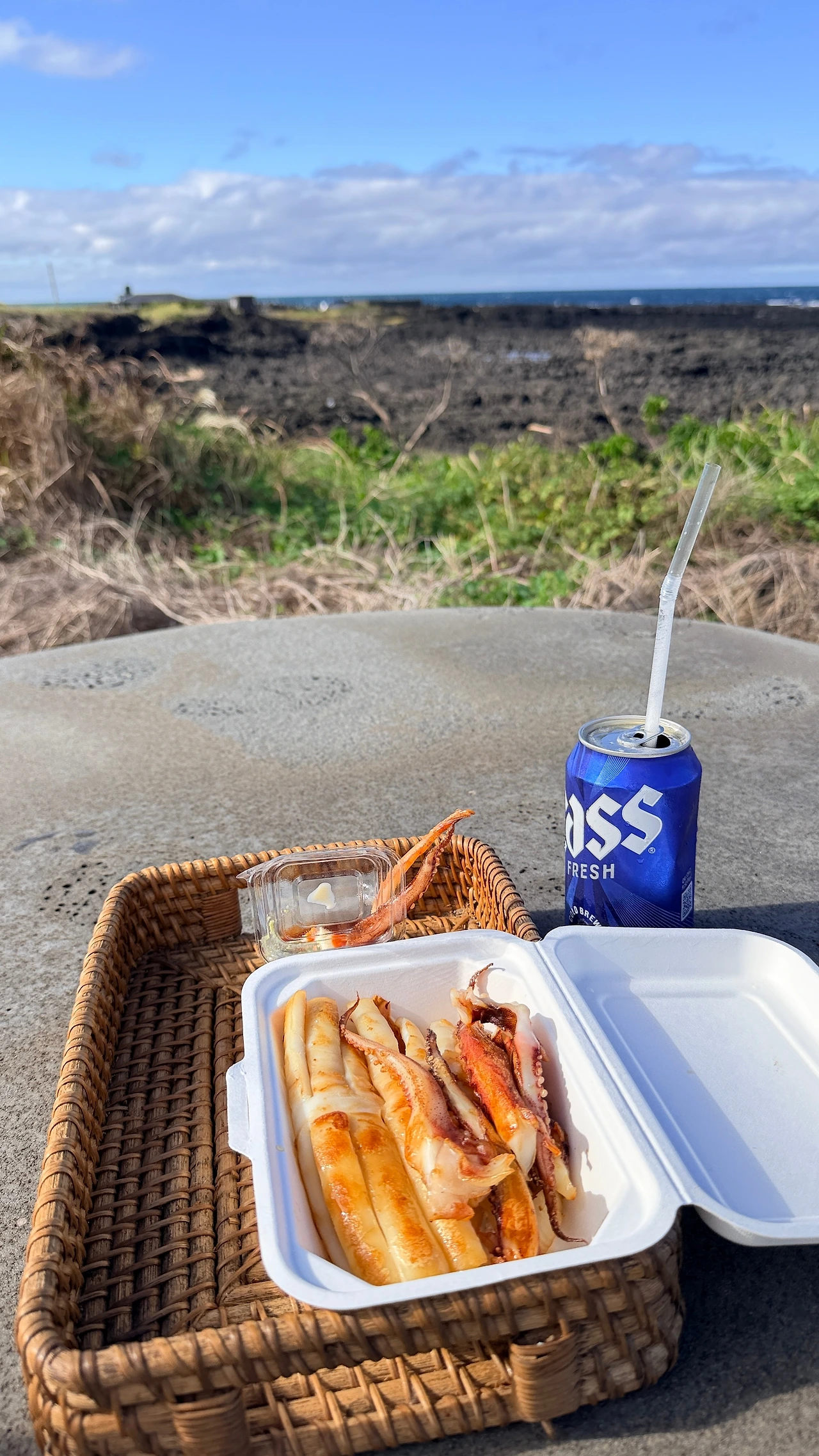 다른올레길을 걷다본 오징어가 여기도 있다. 퀸오자어 18000원 맥주 3천원. 발상이재미있다 바닷 휴게소에 테이블이 있는 곳에 영업을 한다. 오징어를 매달아 놓고 여기가 군 오징어를 판매하는 곳이라는 곳의 표식도 있다. 주인장이 냉장고에 얼여둔 오징어를 꺼내 여 주인장은 굽는다. 손님이 많은 때는 웨이팅도 있다.