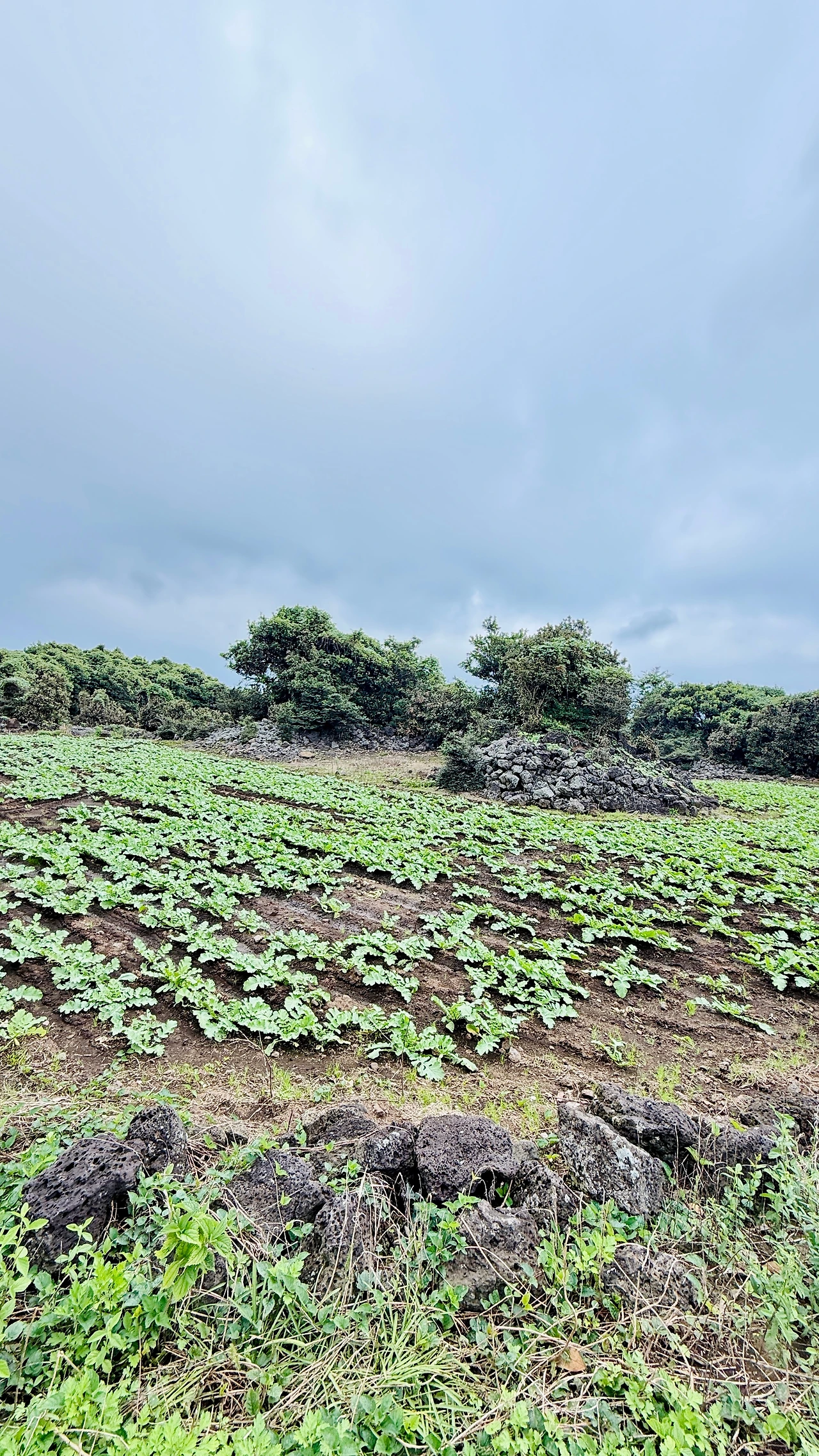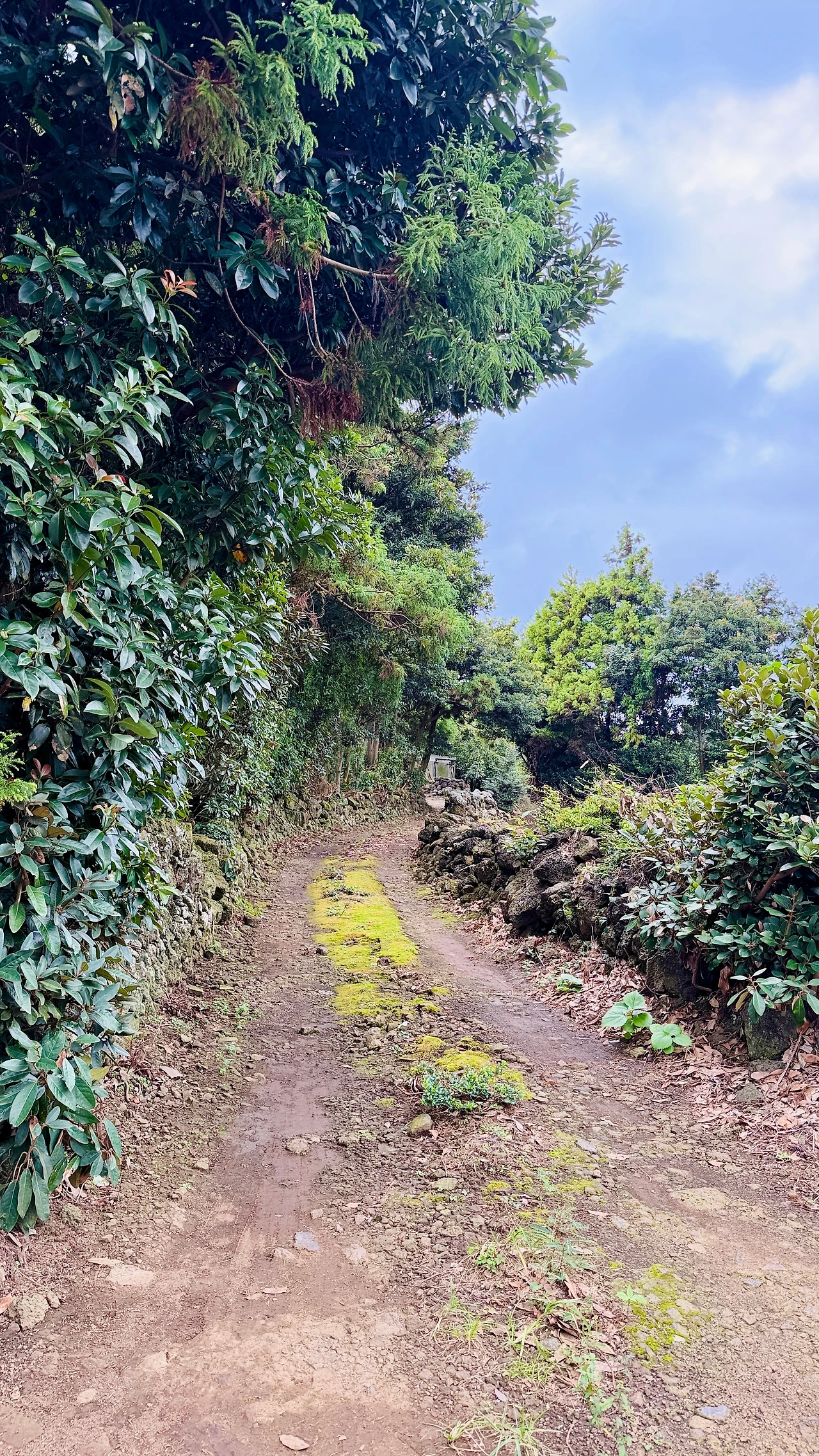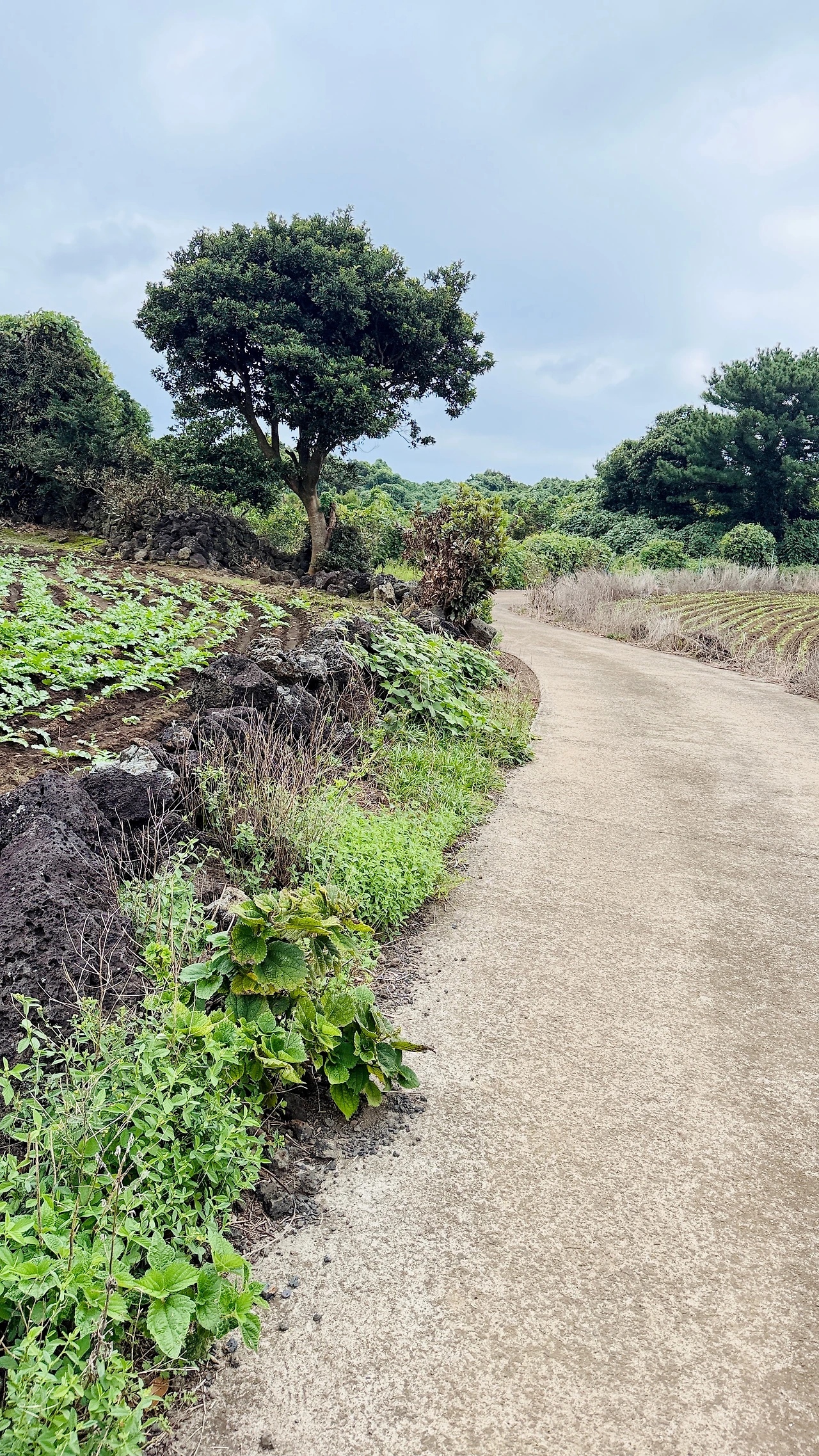 대수산봉을 내려오면 끝없이 펼쳐지는 배추밭, 무밭, 귤밭이다. 시멘트 콘크리트 길이 밭길로 농기계나 트랙터들이 용이하게 드나들게 만들어져 있지만 등산화를 신고 걷기에는 투박한 길이다. 흙길이 지면의 밀착과 함께 땅과 교감하기에 좋다.