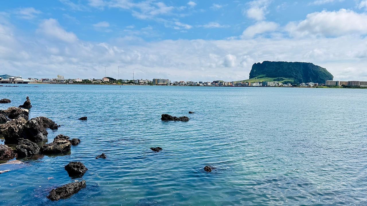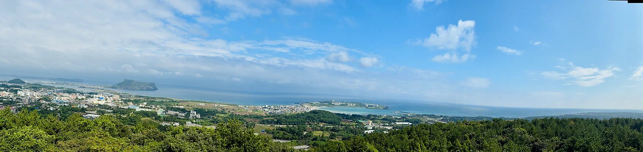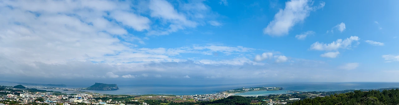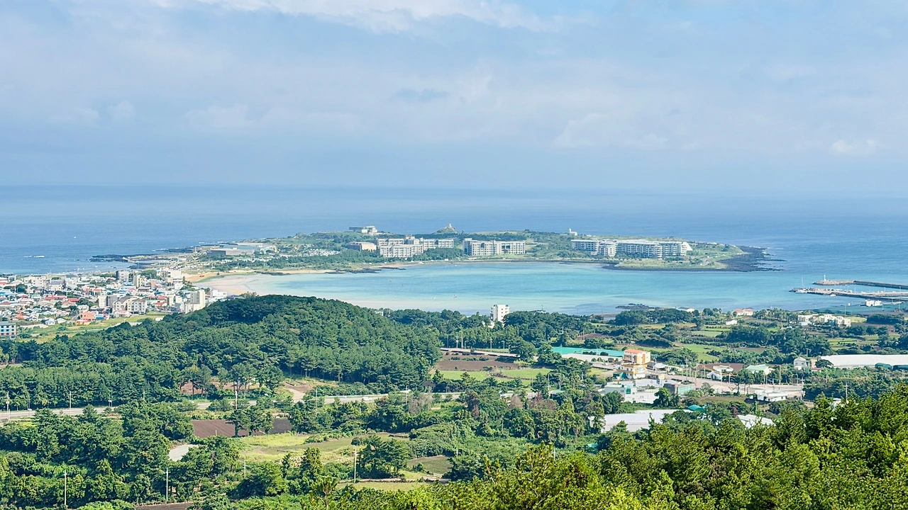 왼쪽이 성산포이고 오른쪽이 섭지코지해수욕장이다.