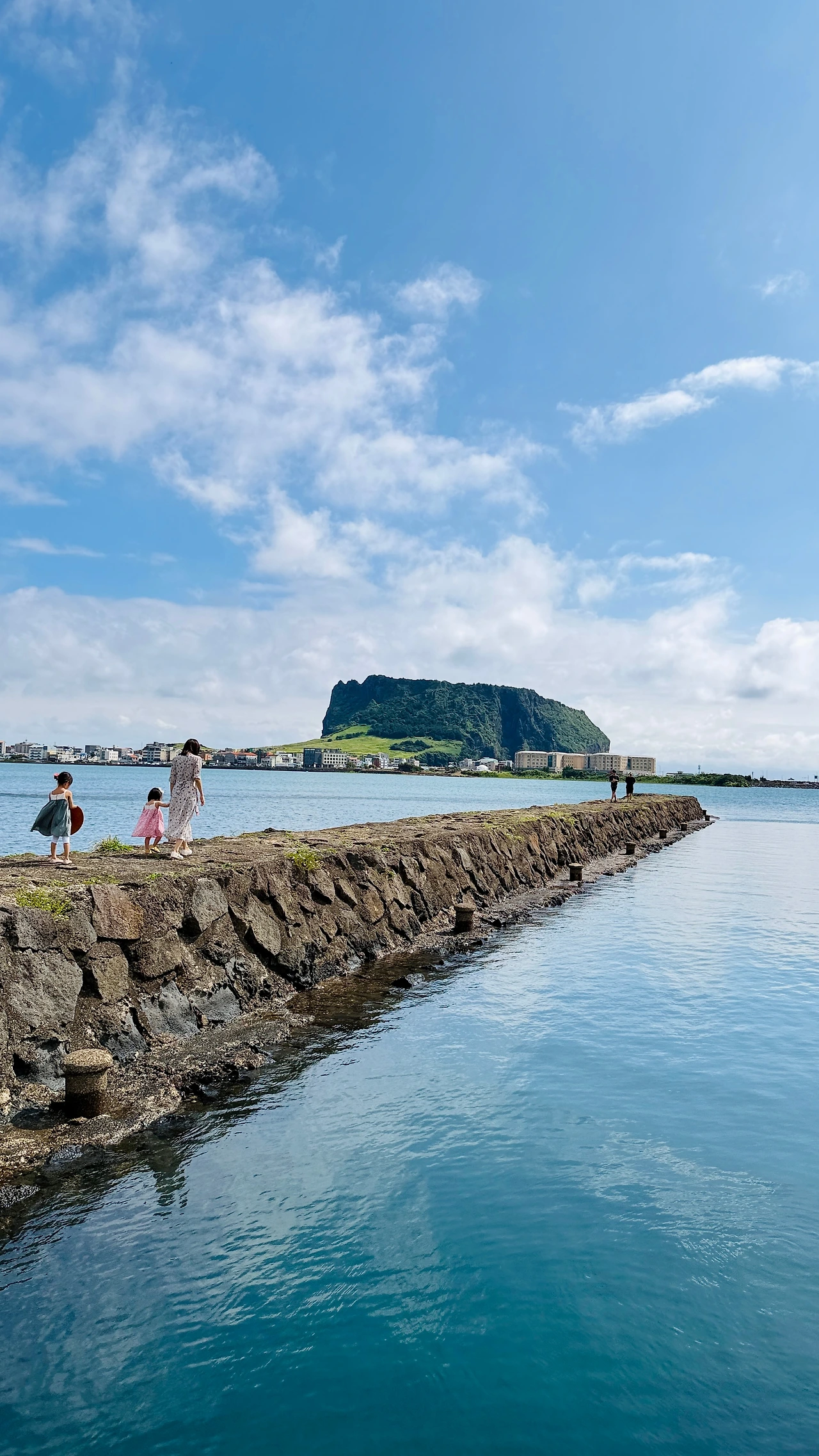 차를 타고 주차하고서 성산포 봉우리만 올라왔다 갔다가를 반복했지만 성산포 꼭대기에서 내다 보였던 그 바다와 호수, 내수면을 구석구석 돌아보리라 생각도 못했다. 제주는 그냥 차로 왔다 사진 한 장 찍고 돌아가면 아무것도 볼 것도 먹을 것도 없다. 싸갔던 김밥을 앉아서 먹는데 사진에 보이는 이쁜 막내 아가씨는 " 엄마 저 아저씨가 먹는 거 나도 먹고 싶어"라고 졸랐다. 이내 나의 가방에 있던 내가 먹을 김밥을 한 줄을 아가씨에게 드렸다. 손수 싼 김밥이었는데 맛있게 먹으면 나도 행복하겠다.