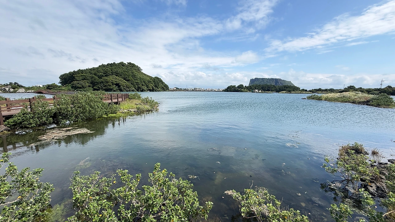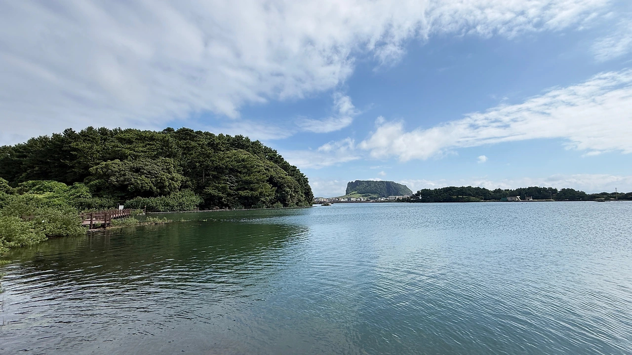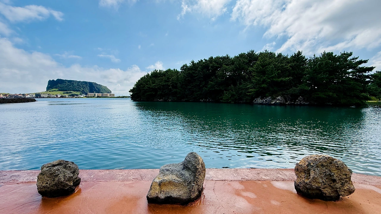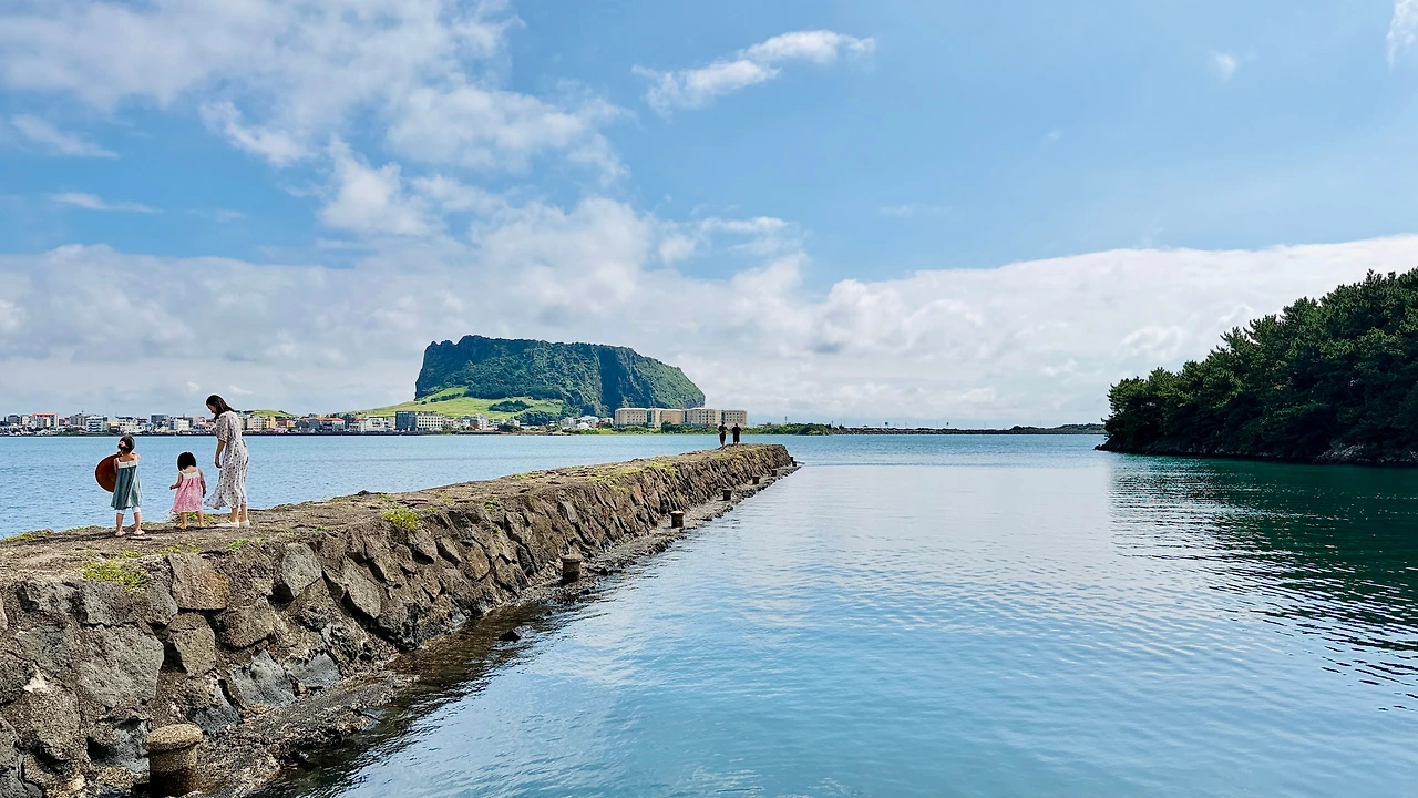 내수면 둑길은 바다와 물길 사이에 있다. 제주 속의 또 하나의 길이다. 수면 위로 걷는 듯한 둑길 위에서는 성산포는 그림자가 된다. 현무암 마당바위 위에 파도가 실렁실렁 부딪쳐 울릴 때는 제주도가 노래를 부른다. 잔잔한 물빛과 바람이 만나는 지점이다. 제주에 가족이 함께 온다면 반드시 이 길을 걸어야 한다. 다만 커피와 김밥을 가져와서 둑에 앉거나 현무암을 한 덩어리에 앉아서 멍을 때리며 먹고, 마셔도 좋다.