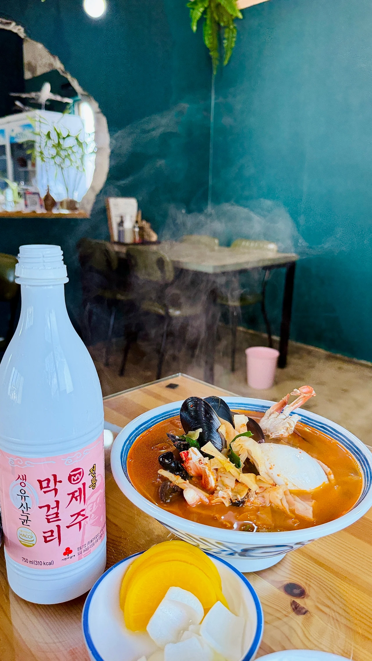 걷다 보니 오후 1시가 훌쩍 넘었습니다. 목도 마르고 배도 고프고 연휴라 문이 열린 식당도 없고 겨우 열린 식당을 찾았는데 중국집입니다. 중국집에 그래도 해물짬뽕이 있어서 맛있게 먹었습니다. 막걸리는 메뉴에 있었는데 식당에서 사다 주었습니다.