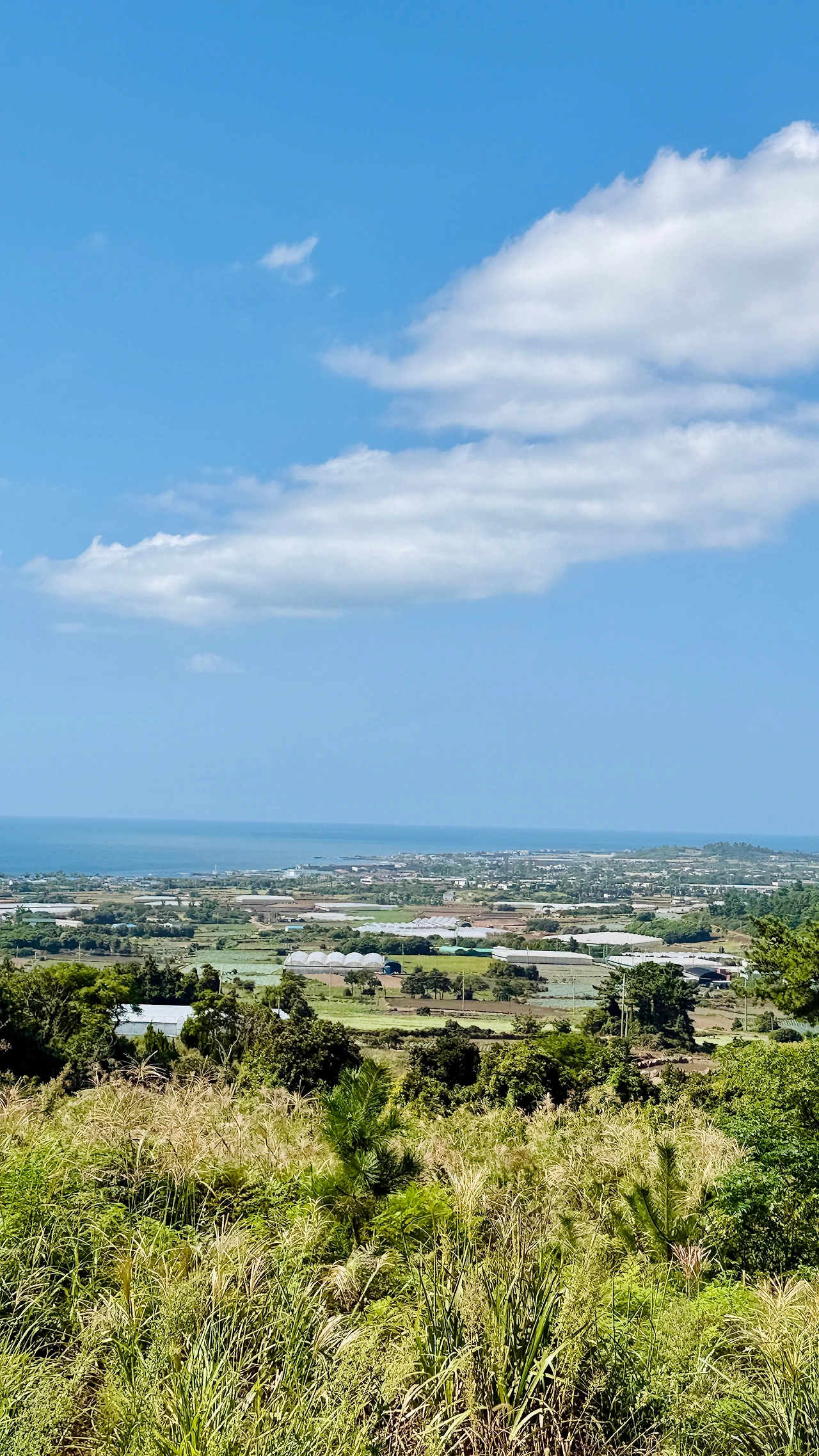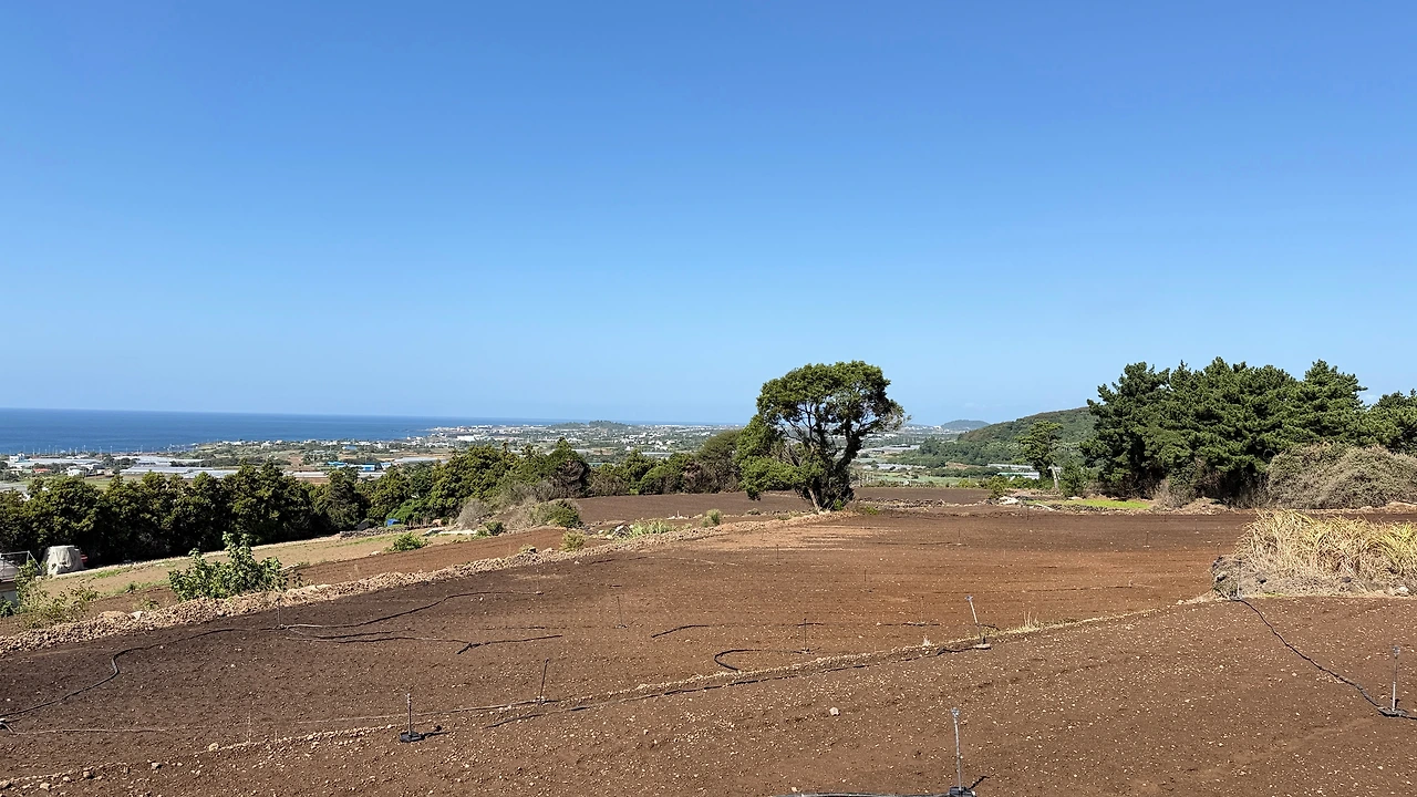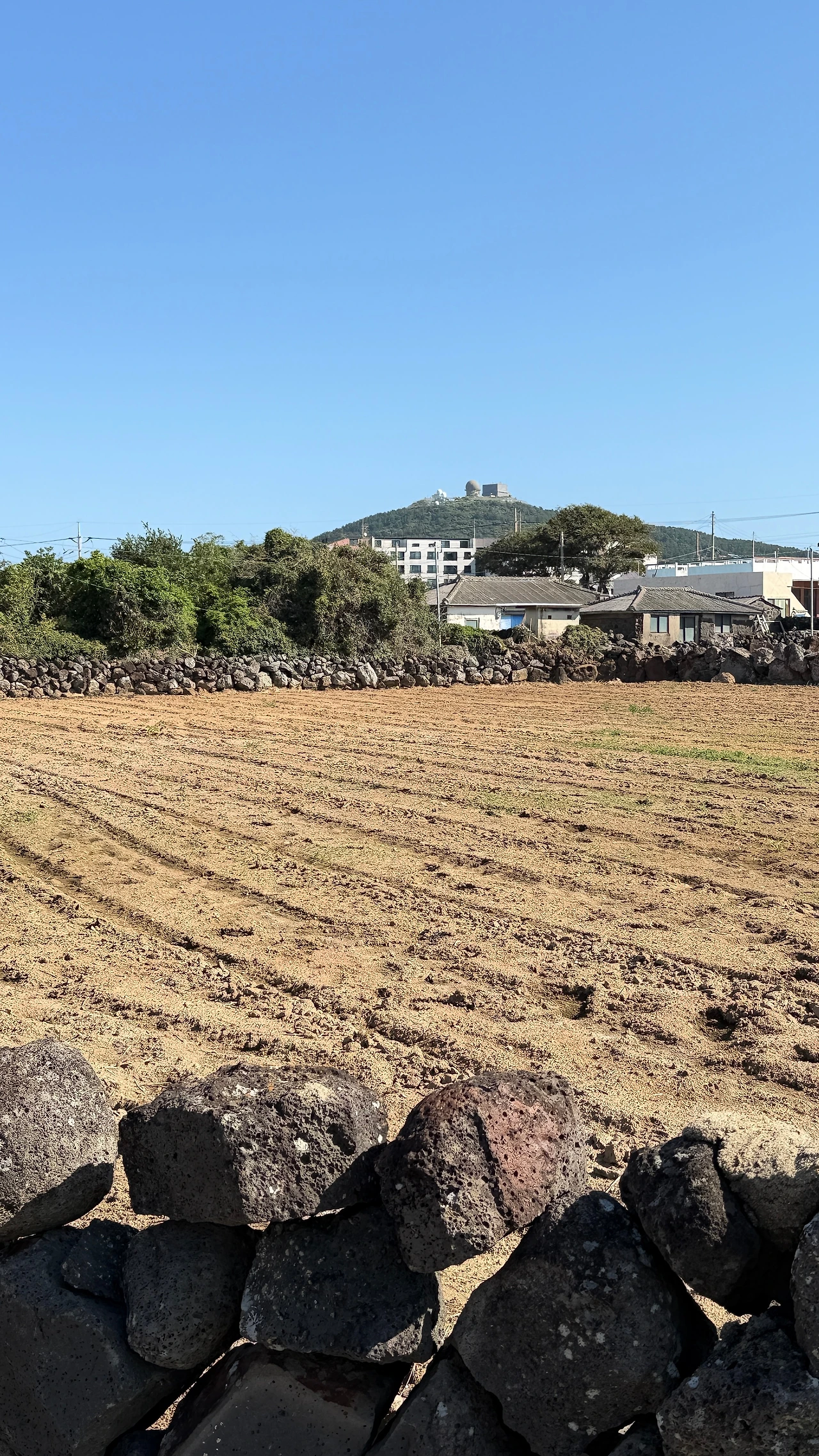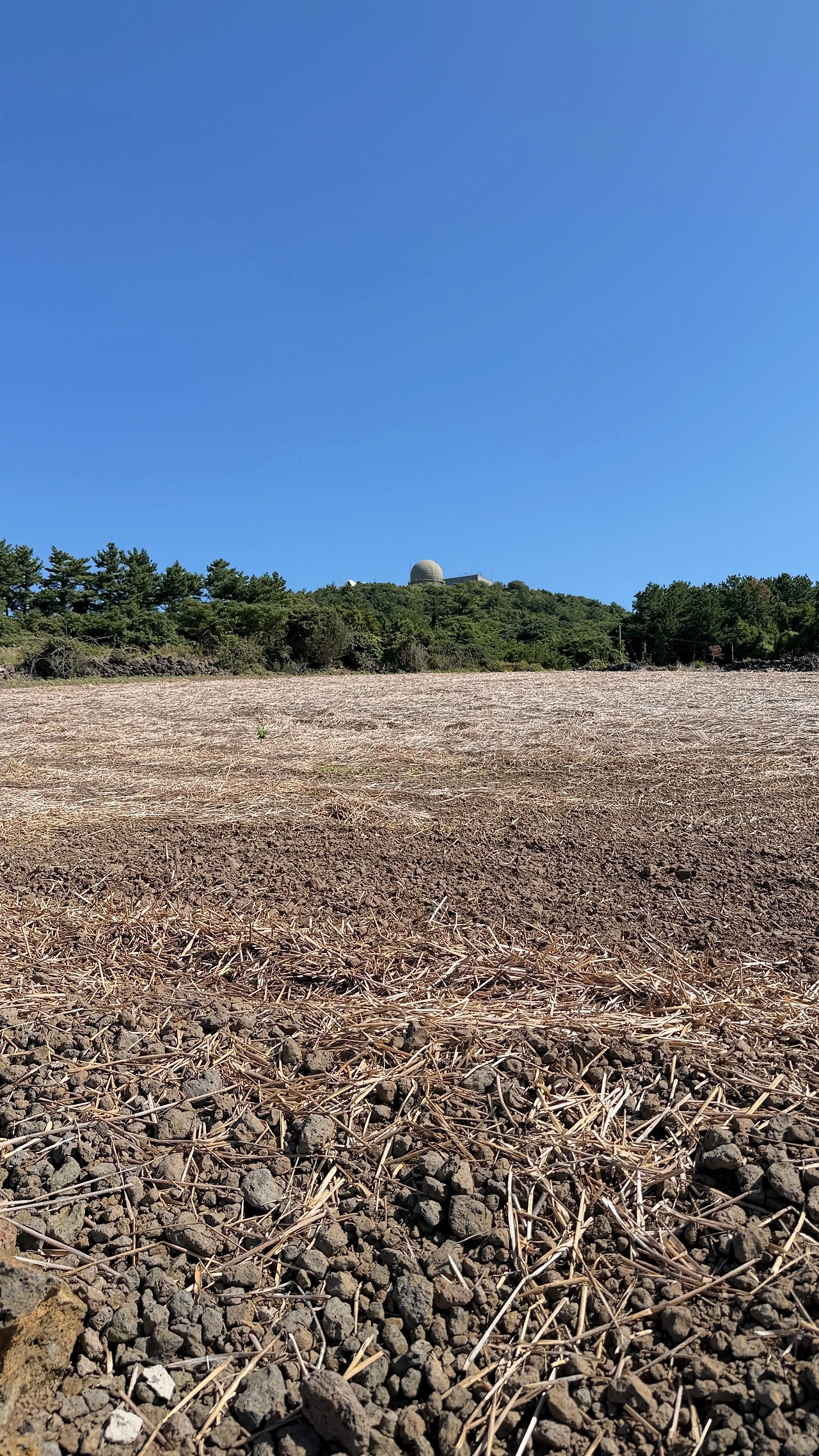 왼쪽에 보이는 덩굴은 참외 덩굴인데 지금부터 시작할리는 없고 왜 심어져 있는지 모르겠네요. 중간에 있는 태양열전기패널도 여기 제주를 비켜나가지 못하네요. 제주에도 밭농사 대신에 전기농사가 서서히 시작되려는 모양입니다. 오른쪽 채소는 무입니다. 다른 코스에서는 이제 씨를 뿌려서 스프링클러로 싹을 틔워서 키우는 수준이었는데 여기는 생장속도가 김장 시즈보다 빨리 출하할 수 있는 정도로 다마가 굵네요.