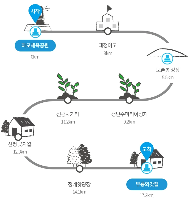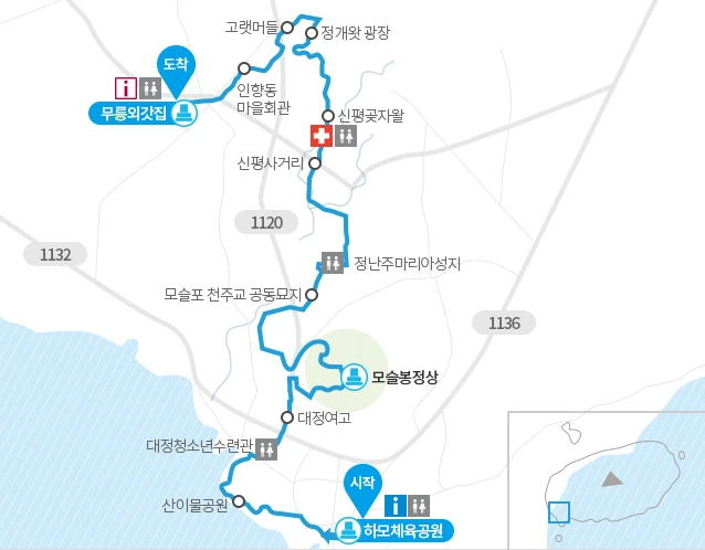 모슬봉의 꼭대기까지는 못 갑니다. 군사기지가 있어서 옆으로 쭈욱 둘러서 가게 됩니다. 어떻게 보면 저 모슬봉의 둘레를 허리 두르듯 둘러서 건너편으로 가게 되는데 그 길에 묘지들이 아주 많이 있습니다. 11코스가 그래서 묘지순례코스라고도 불리는 모양입니다. 일본에도 공동묘지 순례코스가 있는데 어둑어둑 해질 때 혼자 걷는다면 다소 머쓱해질 수 있겠습니다.