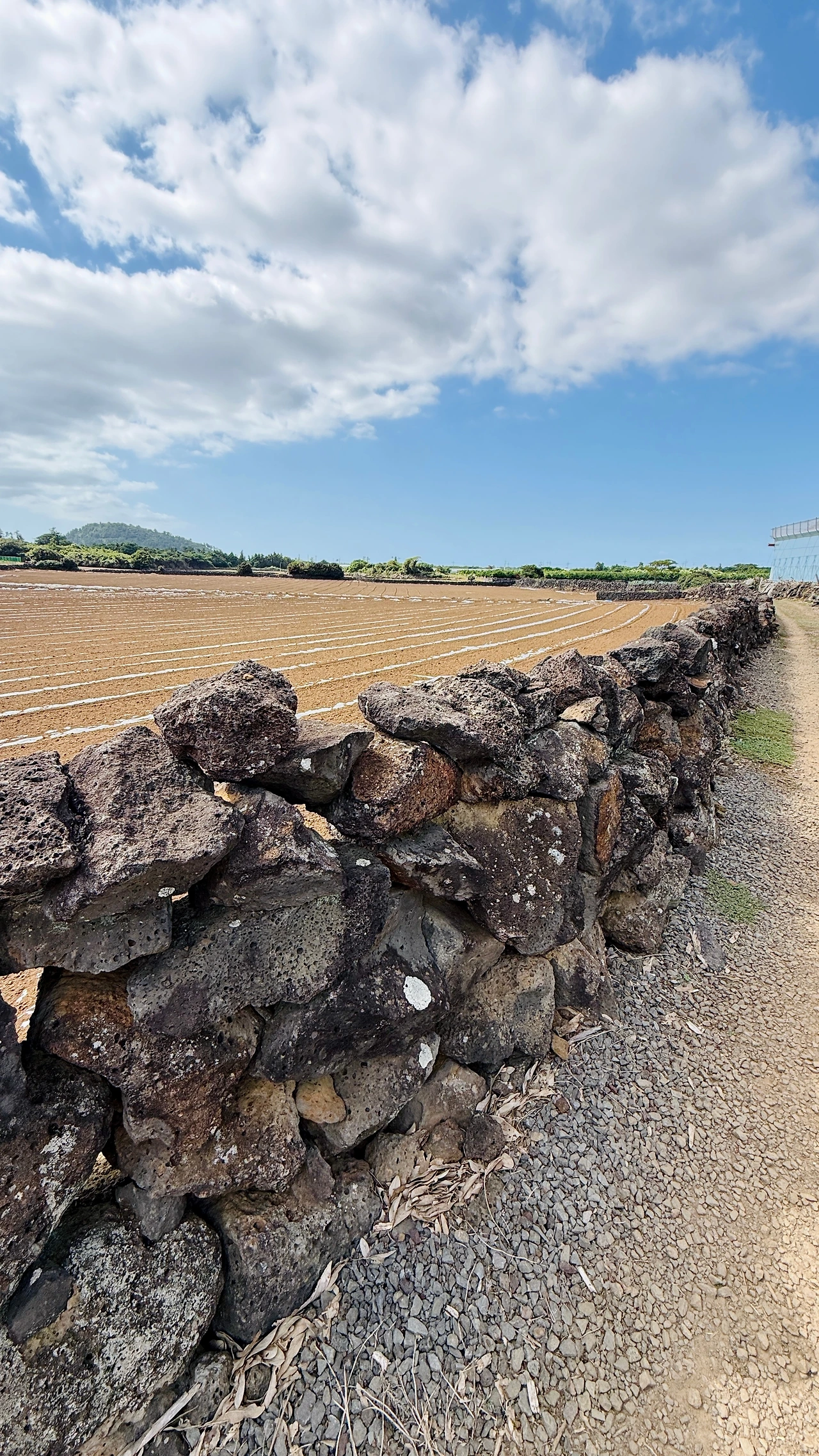 올레길의 묘한 매력은 이 담벼락들입니다. 그토록 많은 돌덩이들을 허술하게 쌓은 것 같아도 절대로 강풍에도 무너지지 않는다는 겁니다. 허술하면서 절대로 자신의 영역을 침범하지 않고 지나치게 하는 능력을 지니고 있습니다.
