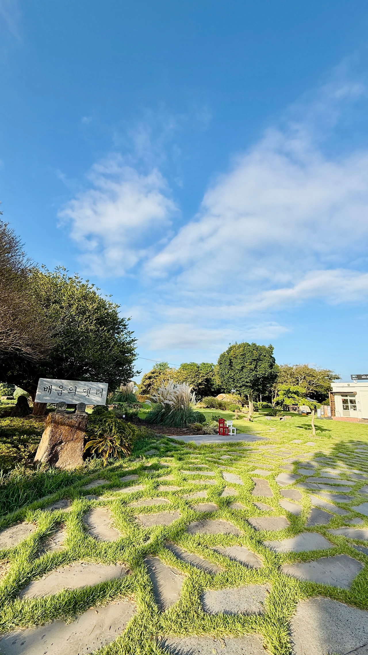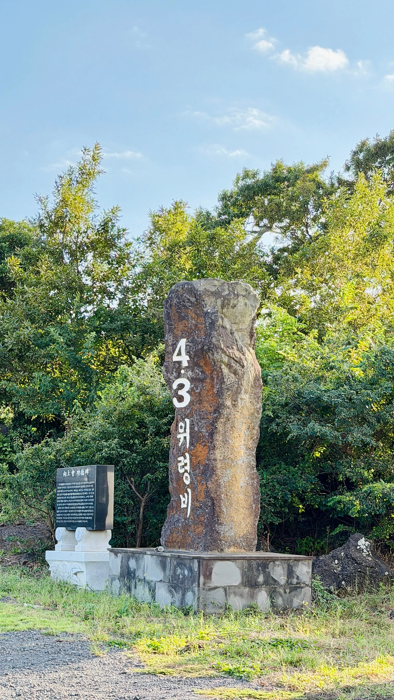 무릉외갓집은 이전에 11코스의 종점이었는데 코스 종점 위치가 좀 옮겨졌더군요. 마을 기업으로 1994년 폐교된 학교를 리모델링하여 마을의 새로운 공간으로 재 탄생되었습니다. 카페도 있고요. 커피, 주스 등 제주 농산물 음료도 있습니다. 위의 무릉외갓집은 간판이고 왼쪽으로 돌면 4.3 위령비가 나옵니다. 그를 지나면 쉼터의 초등학교 분교의 학교가 나오지요.