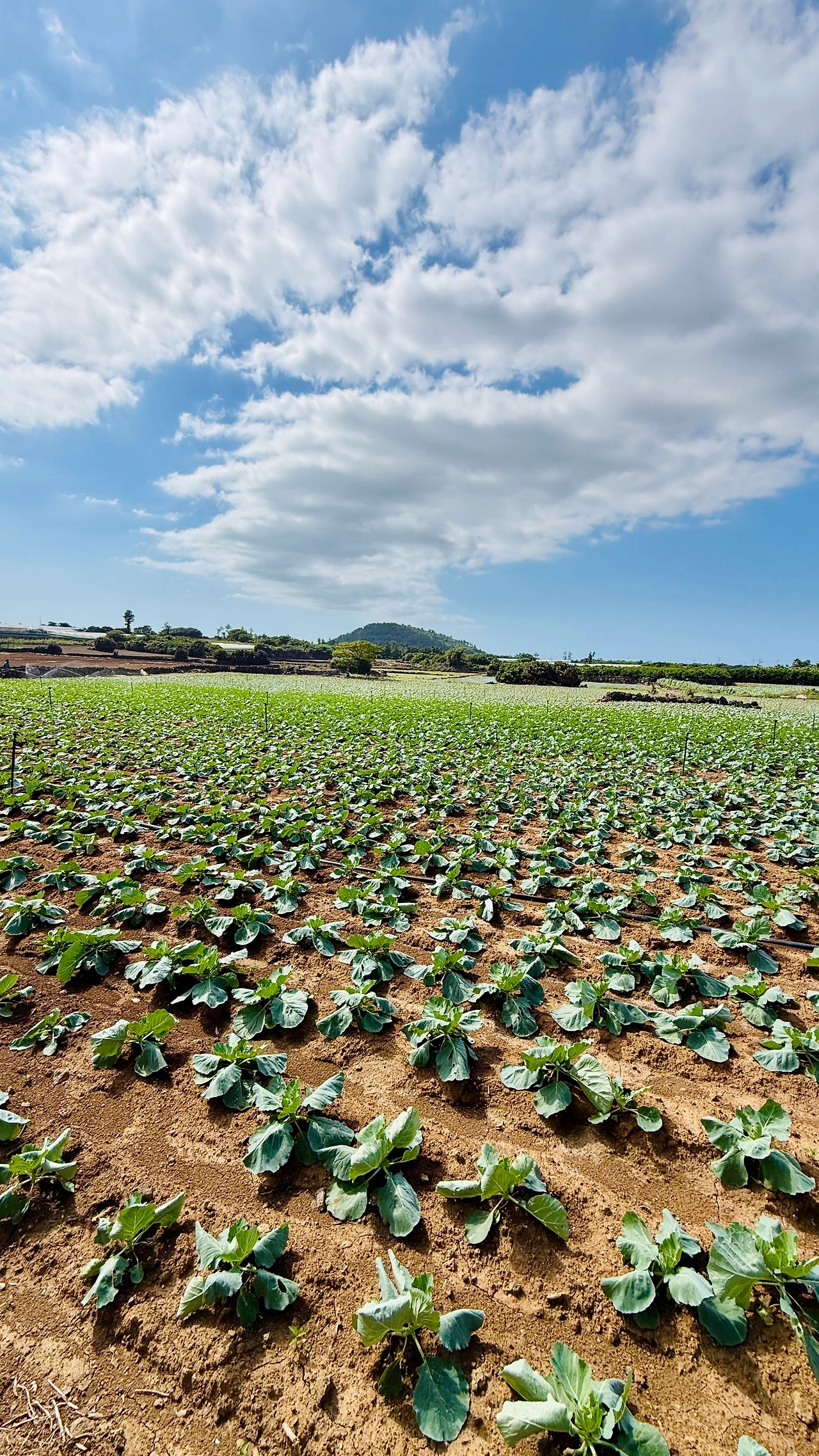 땅이 좋은 만큼 농사가 잘 됩니다. 모슬이라는 말이 모레이듯 모레땅이 기름지고 보드라워서 양배추가 아주 크게 잘 자라고 있습니다.