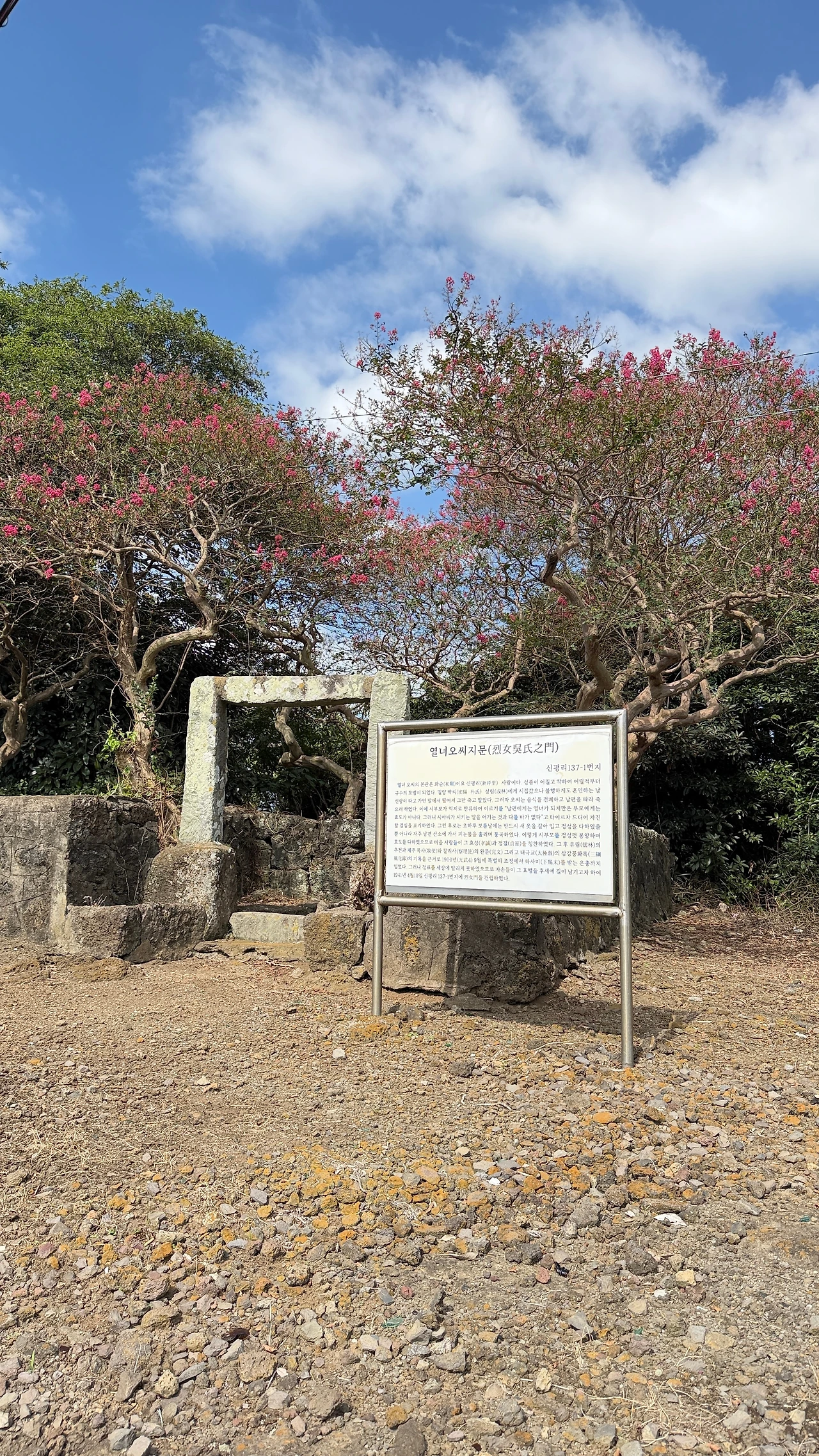 열녀 오 씨 지문(烈女 吳氏 之門)은 조선시대 남편을 여의고 시부모 봉양에 지극한 효도를 다하여 나라로부터 인정받은 열녀 오 씨의 사실을 기록하고 기리는 비석입니다. 모슬봉을 지나 곶자왈로 향하는 길목에 있는 마을입니다. 남편이름이 밀양 박 씨에 이름이 성림이며 그의 처가 화순인 오 씨라는 그죠. 그런데 남편 박 씨가 죽은 날은 결혼하는 날 말을 타고 가다 떨어져 죽었습니다. 죽을 때까지 재가하지 않고 씨부모를 공양했던 거지요. 자손이 없어서 안타깝습니다.
