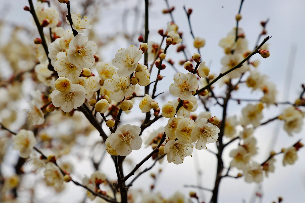 꽃이 흰 백매는 꽃받침이 자주색이며 꽃받침이 푸른 청매는 상서로운 기운이 느껴진다.