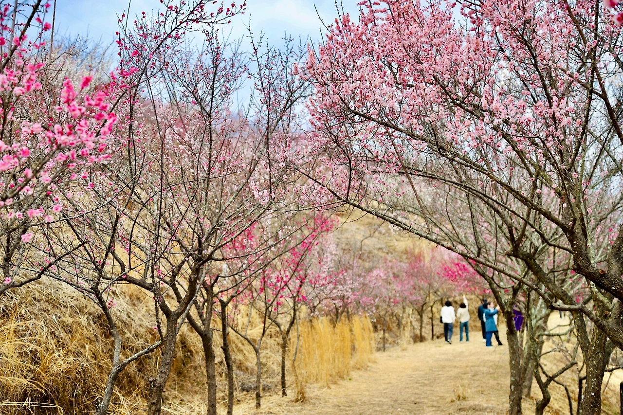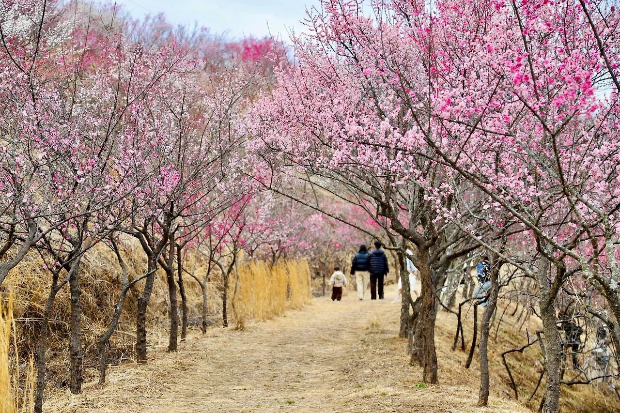 빨강머리 앤에 나오는 그 벚꽃 터널 같은 곳이다. 벚꽃 컬러의 매화를 어쩜 이렇게 정성스레 가로수처럼 심어 뒀을까? 심은 분의 얼굴의 미소가 떠오른다. 이 나무들이 성장해서 많은 사람들이 이 길을 가로질러가면서 사진도 찍고 즐거워하는 그 표정말이다.