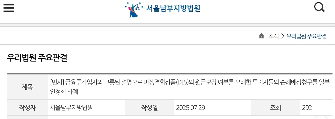 서울남부지방법원 주요 판결로 소개되었습니다.
