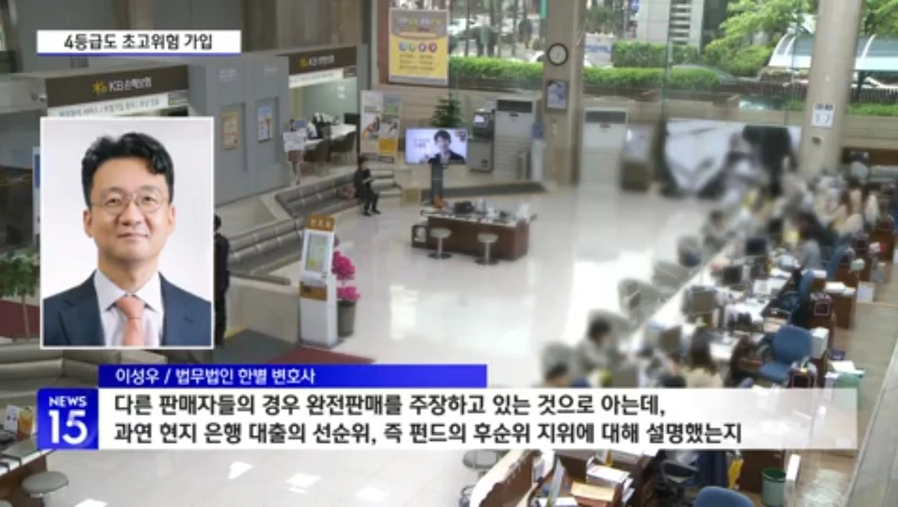 [이성우 / 법무법인 한별 변호사 : 다른 판매자들의 경우 완전판매를 주장하고 있는 것으로 아는데 과연 현지 은행 대출의 선순위, 즉 펀드의 후순위 지위에 대해 설명했는지 중대한 의문이 있다는 점에서 국민은행 외 판매사들도 전향적인 배상률을 고려해야 한다고 생각합니다