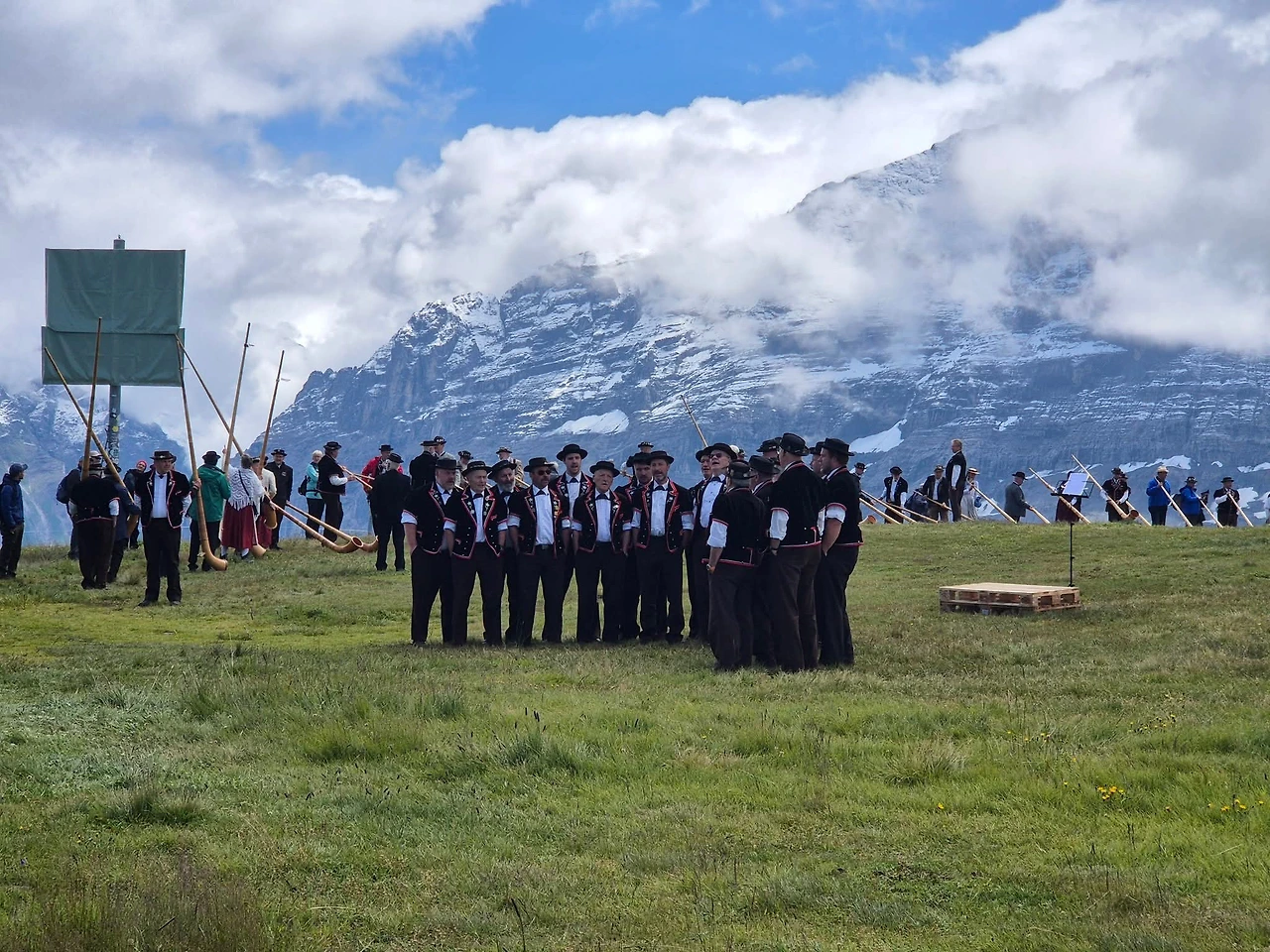 4. 마지막으로 요들송(요란한 요들은 듣지 못함)을 부르는 스위스 합창단? 분들의 모습인데 왜 다들 주머니에 손을 넣고 있을까요? 산 밑에서도 산 정상에서도 주머니에 손을 넣고 부르고 있었습니다.