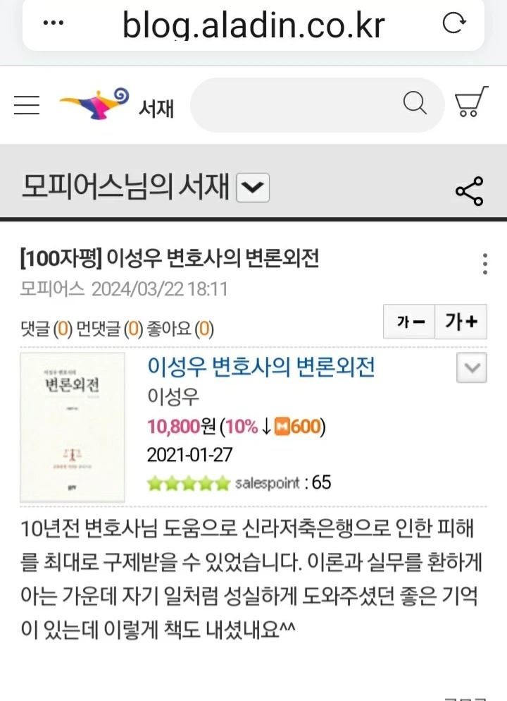 기억해주시고 과분한 서평을 남겨주셔서 감사하다