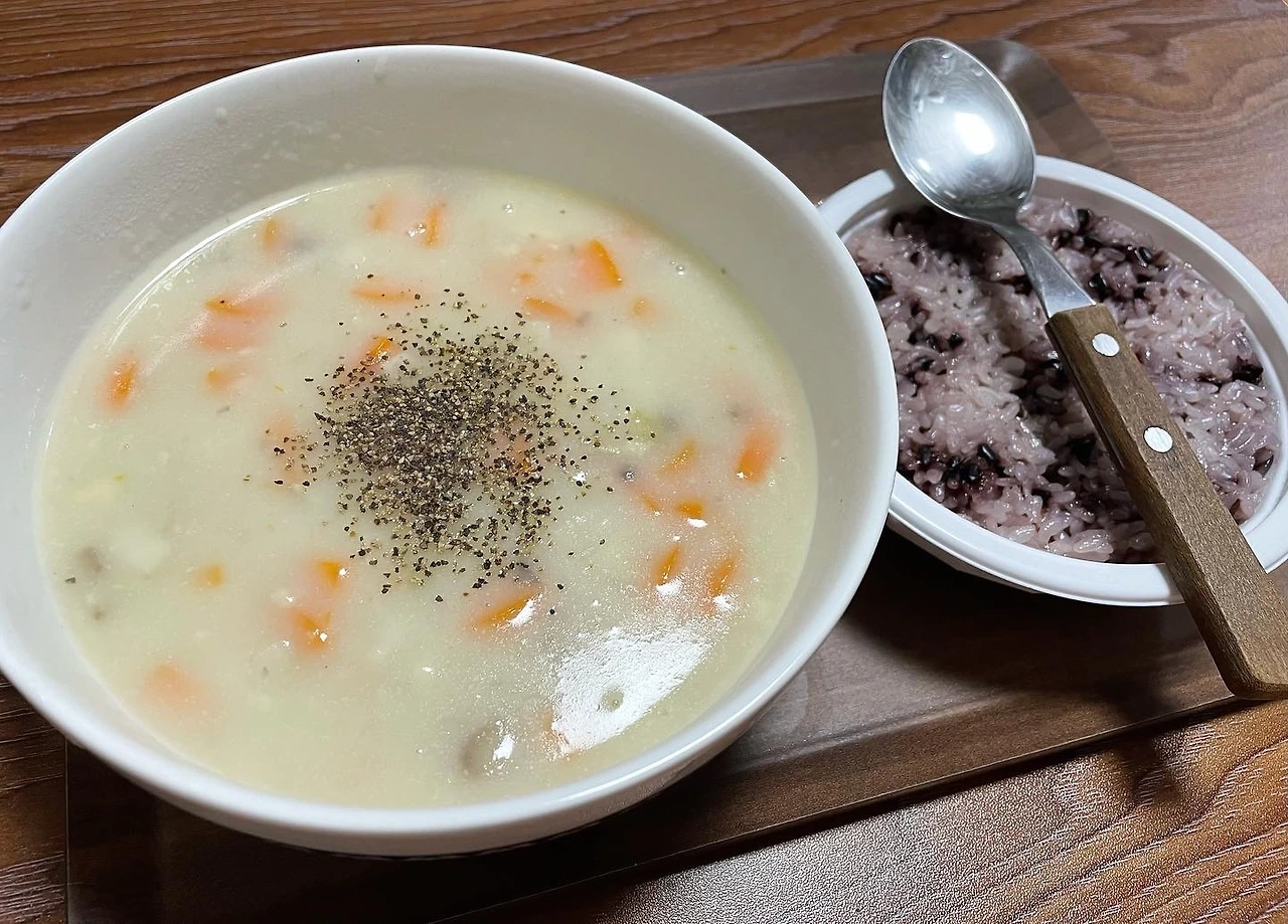 스프와 밥은 어울리지 않는다는 낡아빠진 고정관념을 버리고 오늘 저녁 스프밥으로 급식 영양사 선생님이 스프와 밥을 함께 메뉴로 구성한 그 커다란 뜻을 이해해보는 것은 어떨까?