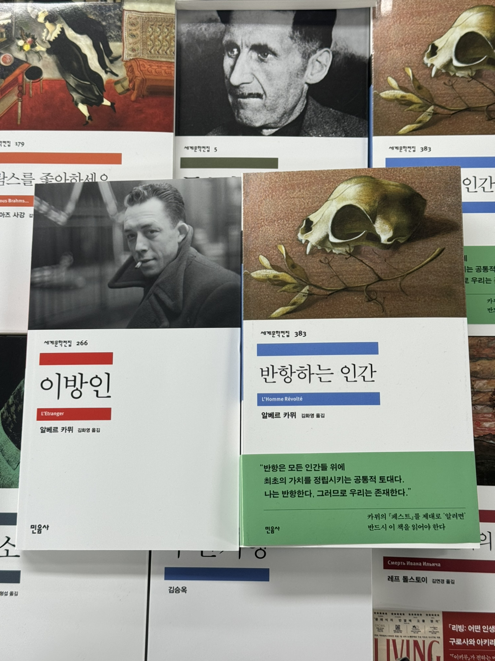최근 카뮈 형님의 <이방인>, <시지프의 신화>, <반항하는 인간> 시리즈로 줄빠따를 맞았다.