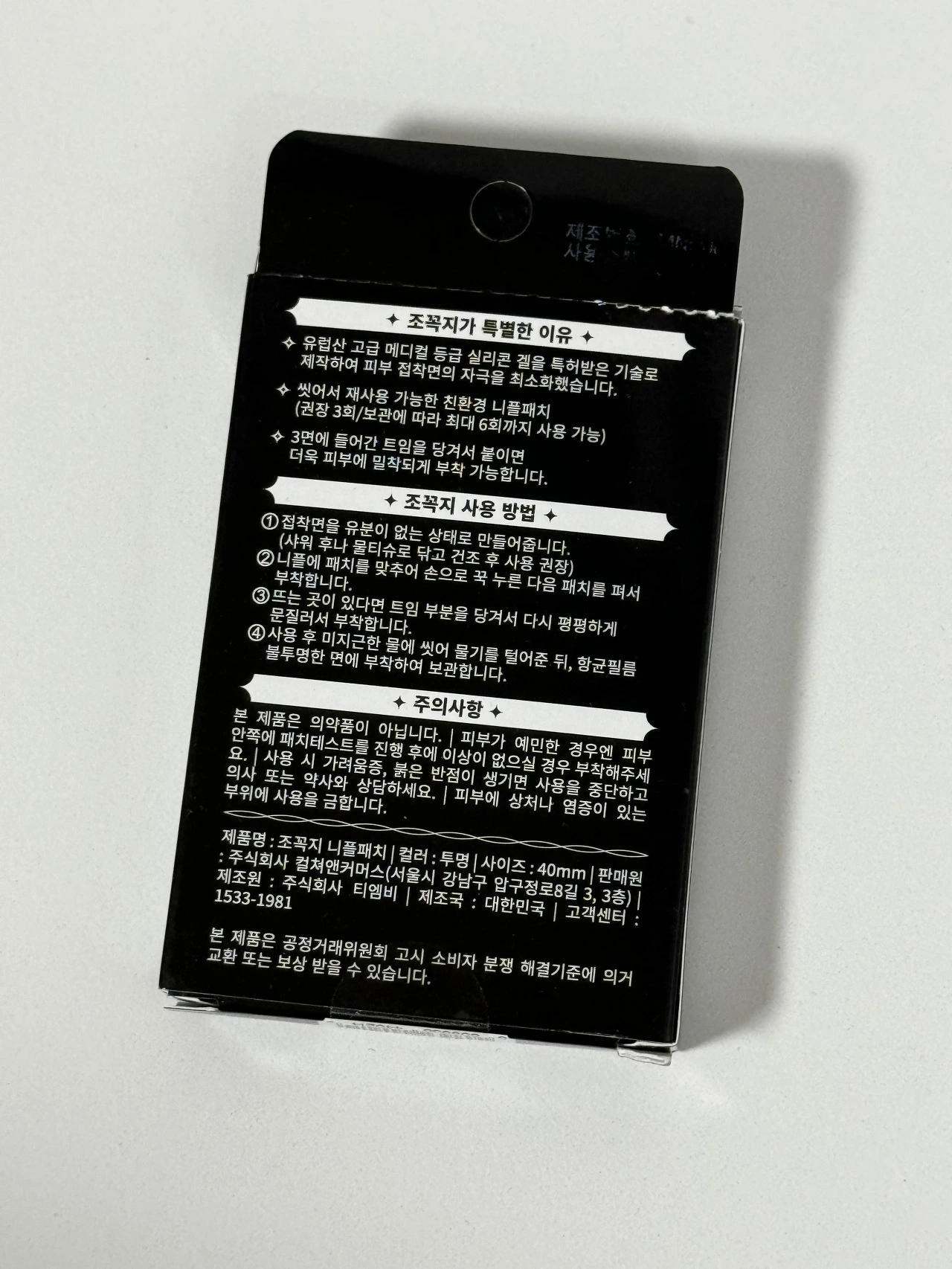 이게 누구 머리에서 나온 아이디어인지 모르겠지만 도저히 이해할 수가 없다. 어쩌면 재사용 가능하다는 것이 다른 니플패치와의 차별점이며, 제품의 아이덴티티이자, 다른 것들보다 비싼 이유일 텐데, 왜 니플패치를 재사용해야 하는지에 대해 도무지 공감할 수가 없다.