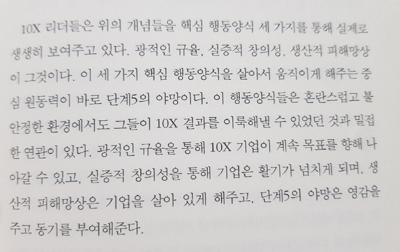 지금도 어떤 리더가 좋은 리더인지 잘 모르겠다. 누군가에게는 좋은 사람이 누군가에겐 그렇지 못한 경우를 많이 보다 보니 정말 좋은 리더는 10배 이상 성과를 내는 사람인가에도 의문이 생긴다. 책을 좀 더 읽어봐야 이해가 될 거 같다.