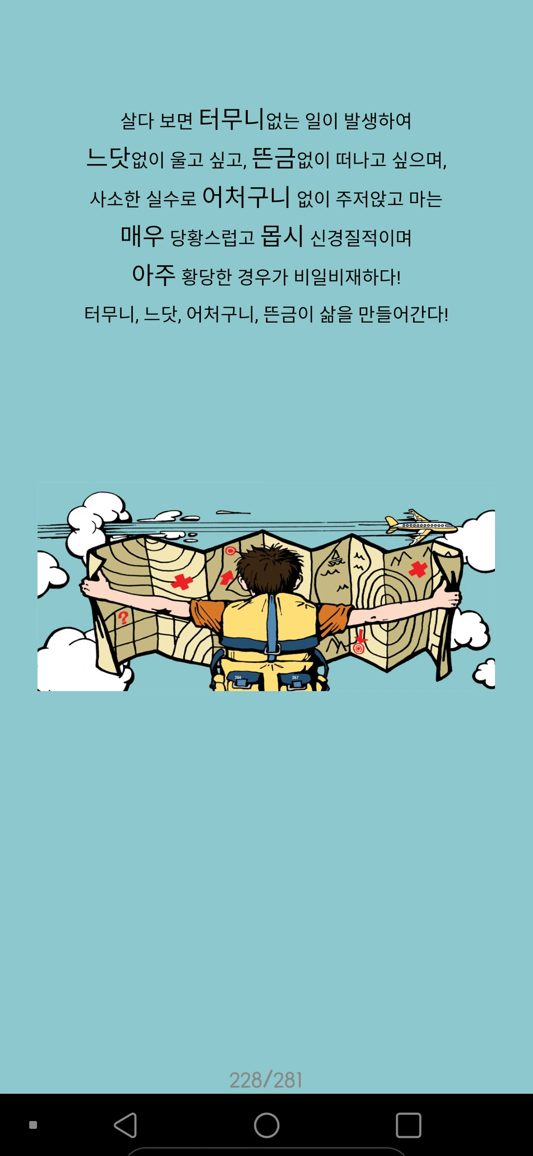 그림과 함께 한 줄 문장들을 볼 수 있어서 더 쉽게 문장들을 이해할 수 있었다. 마음에 드는 페이지는 프린트해서 두고두고 보고 싶은 책이다.