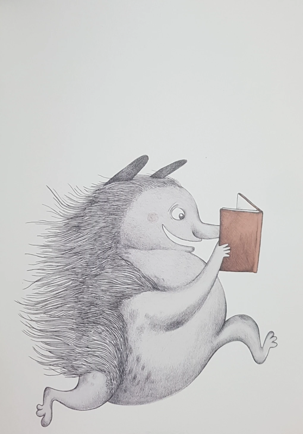 기쁨은 새로 발견한 책을 들고 친구에게 달려가.이다.