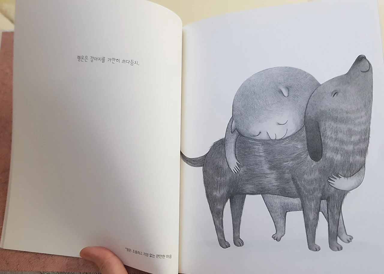 평온이다. 평온은 강아지를 가만히 쓰다듬지.