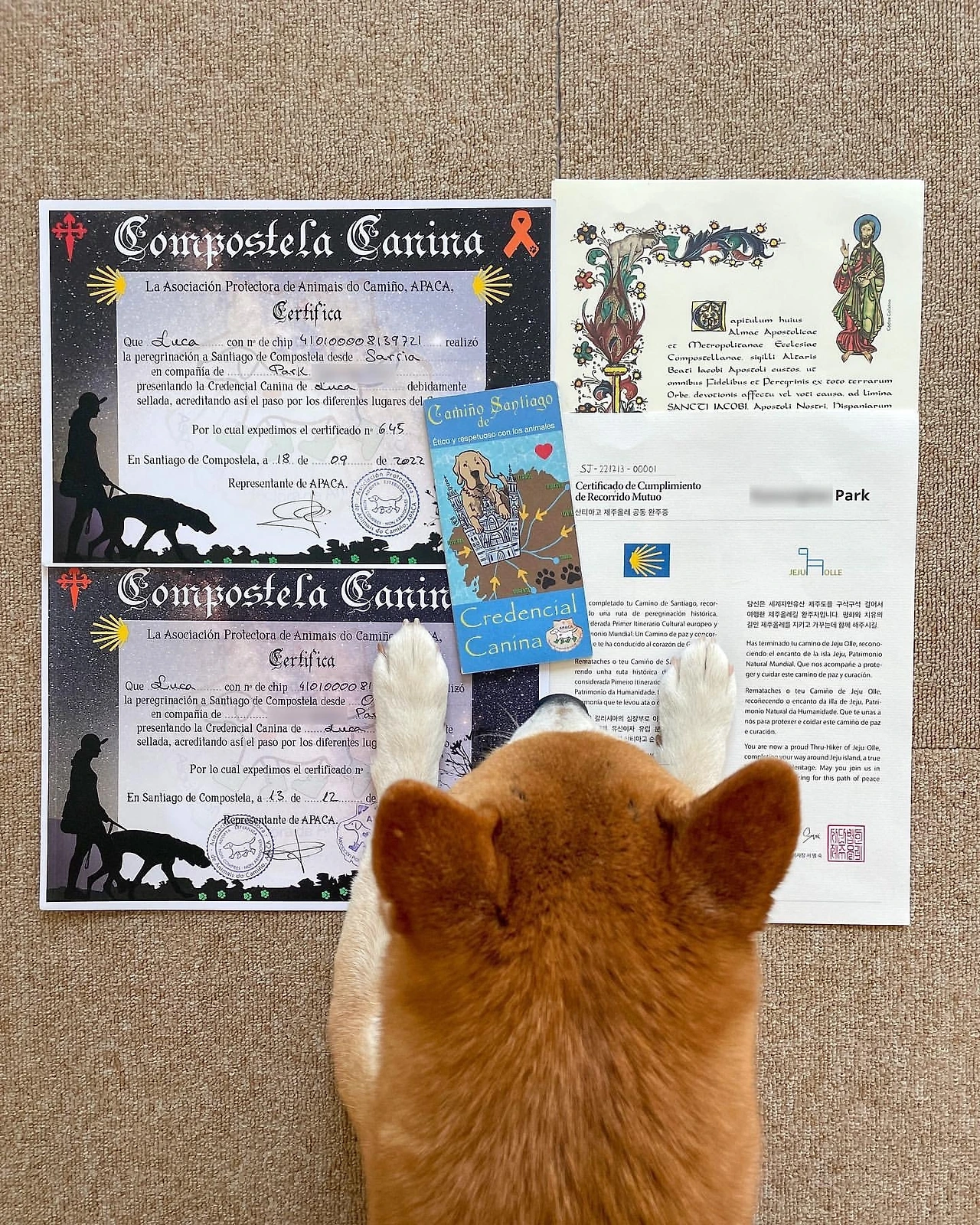 2018년부터 APACA라는 단체에서 반려견을 위한 여권(크레덴시알)과 순례 증명서(콤포스텔라)를 발급하고 있다. 반려견 동반 순례길 패키지를 운영하는 현지 여행사도 있고, 일부 사립 알베르게는 그릇, 침대 등 반려견 용품을 제공한다. 제주 올레길과는 다르게 코스를 이탈하지 않고도 전구간 펫프렌들리 숙소를 예약하는 데 성공했다. 인프라가 갖춰졌다는 건 반려견도 충분히 걸을 수 있다는 거 아닐까?
