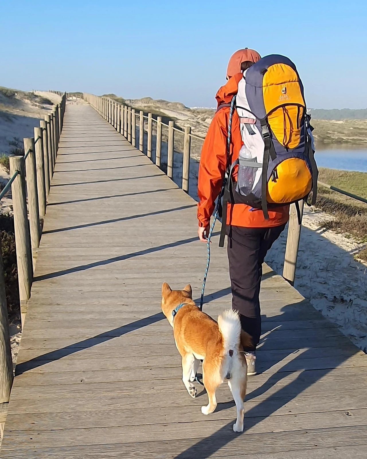 세 번째 순례길을 나서는 순례자인 만큼 짐 꾸리기 고수가 되었을 법도 한데 이제야 내 몸에 맞는 배낭을 준비했다. 사진에 보이듯, 첫 순례길에는 루카의 체력을 과소평가해 가끔은 업고 다닐 생각(?!)으로 반려견 이동가방을 직구했다. 루카도 들어갈 수 있는 가방을 발견하고 매우 뿌듯했던 걸로 기억한다. 사용 빈도가 떨어져 결국 다른 시바견 친구(료코야, 잘 쓰고 있니?)에게 넘겼다. 두 번째 순례길에는 체격 좋은 남동생의 도이터 배낭을 빌렸다. 저 말도 안 되는 이동가방보다 훨씬 편했지만 구형 모델이라 배낭 자체가 무거웠고 토르소가 맞지 않았다.