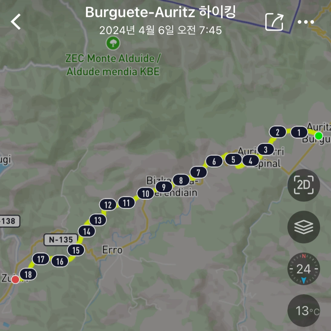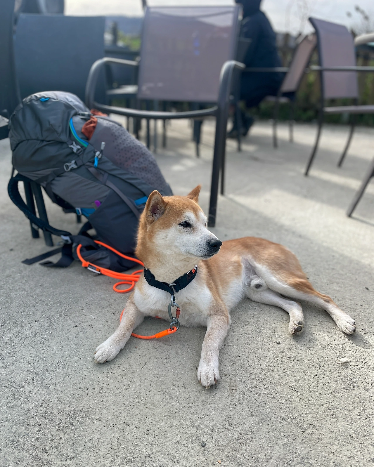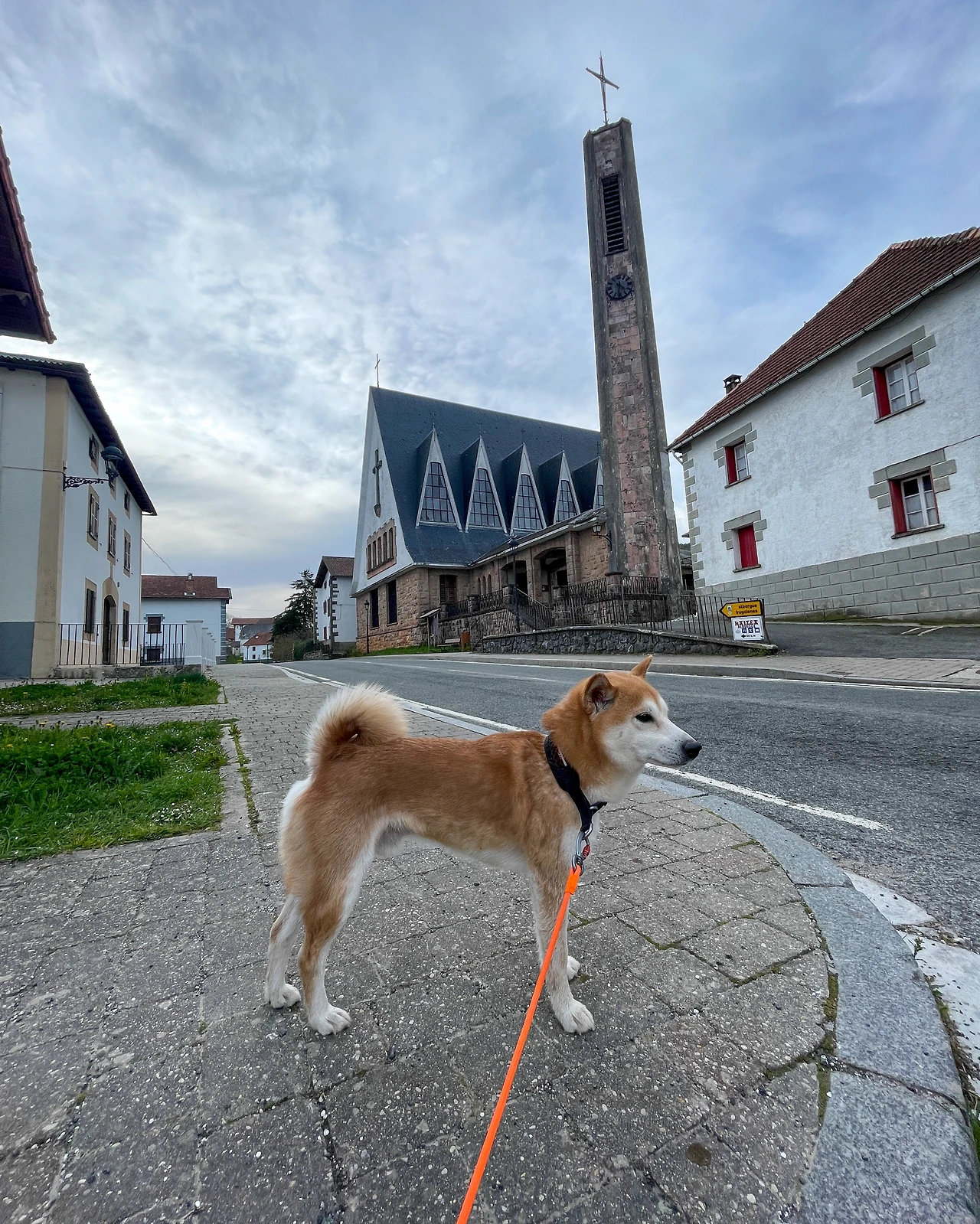 부르게테부터 다음 마을까지 3.6km, 그리고 또 다음 마을까지는 5.1km다. 첫 번째 마을인 Espinal에서는 잠시 멈춰 물을 마시고, 두 번째 마을인 Bizkarreta에서는 카페에 들러 화장실을 이용했다. 배낭을 내려놓으면 루카도 엎드려서 쉴 자세를 취한다.