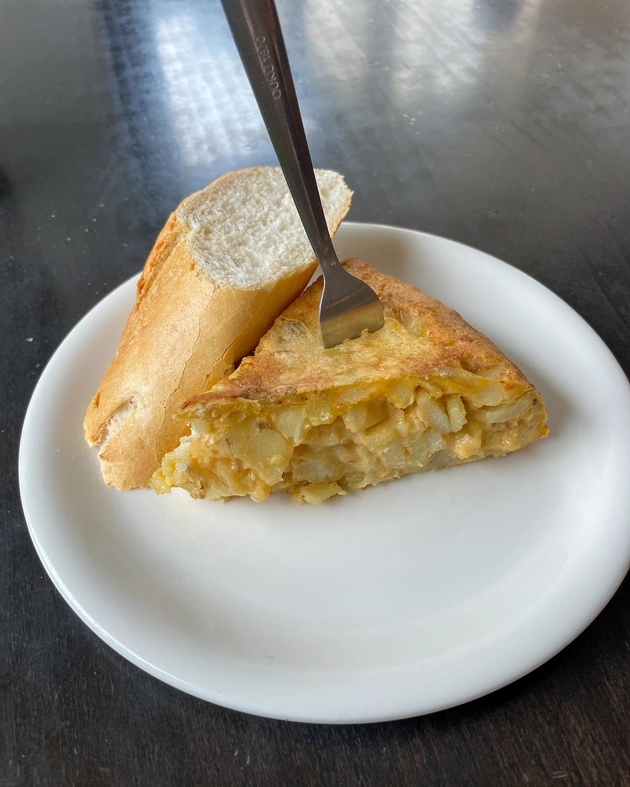 숙소에서 추천해 준 레스토랑이 아닌, 그냥 제일 가까운 bar에서 또르띠야를 주문했다. 계란 감자 오믈렛에 바게트 한 조각이 같이 나온다. 또르띠야는 어느 식당에서 주문해도 평타는 치는 것 같다. 가격이 착하고 나에게는 한 끼 식사가 된다. 남은 바게트는 루카를 위해 챙겨간다.