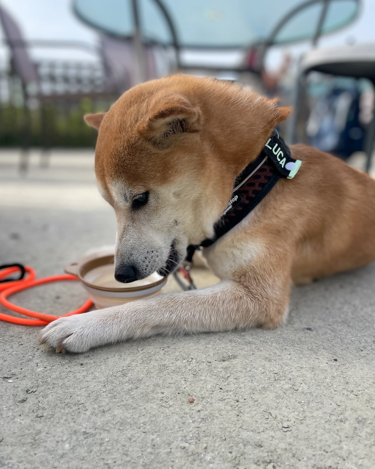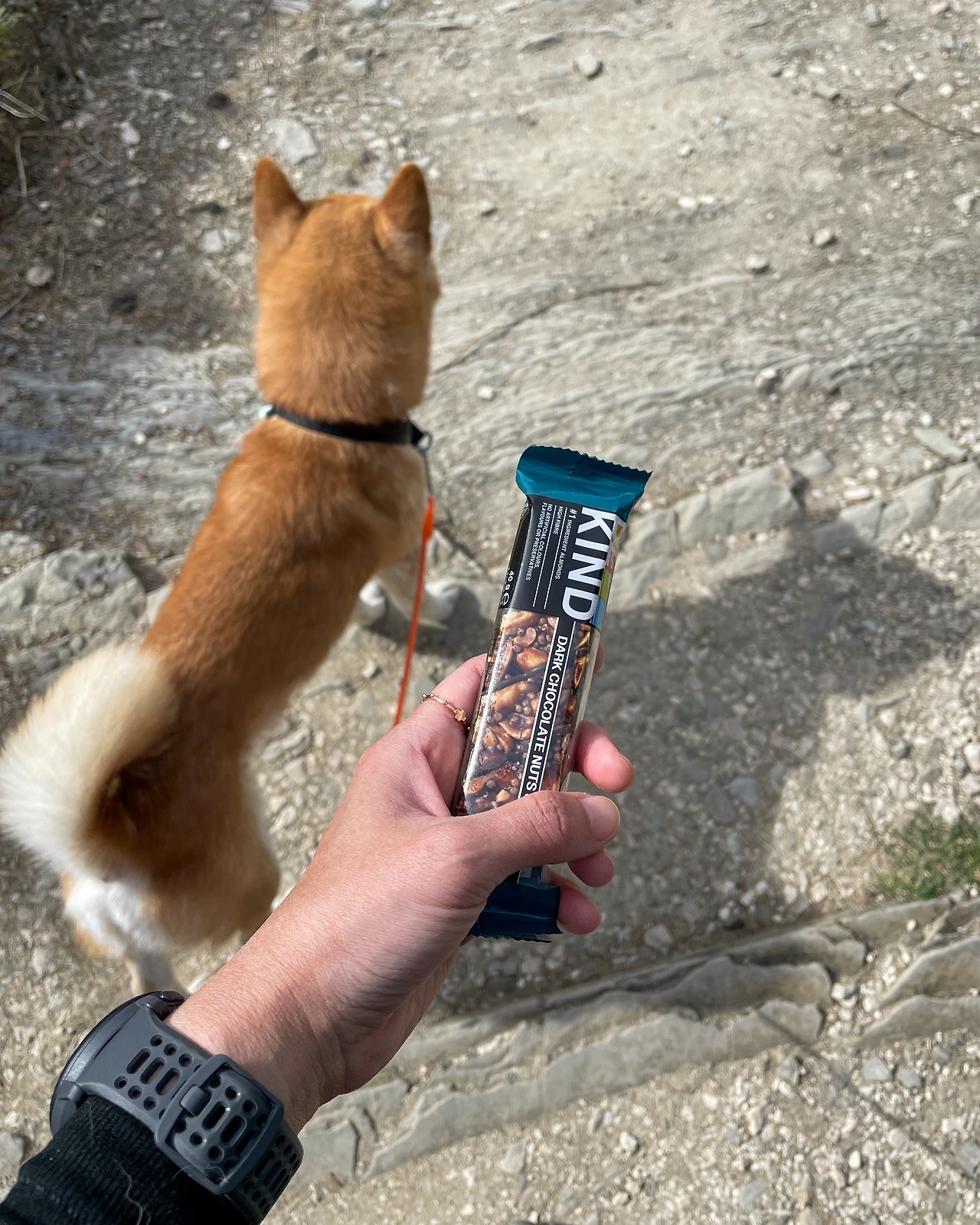 절반 정도 왔을 때 나는 에너지바, 루카는 사료 한 그릇을 먹었다. 평소에는 하루 두 끼를 주지만 순례길에서는 최소 세끼를 준다. 과거 여행 패턴을 볼 때, 루카는 한국에 돌아가면 아마 몸무게가 늘어나있을 것이다.
