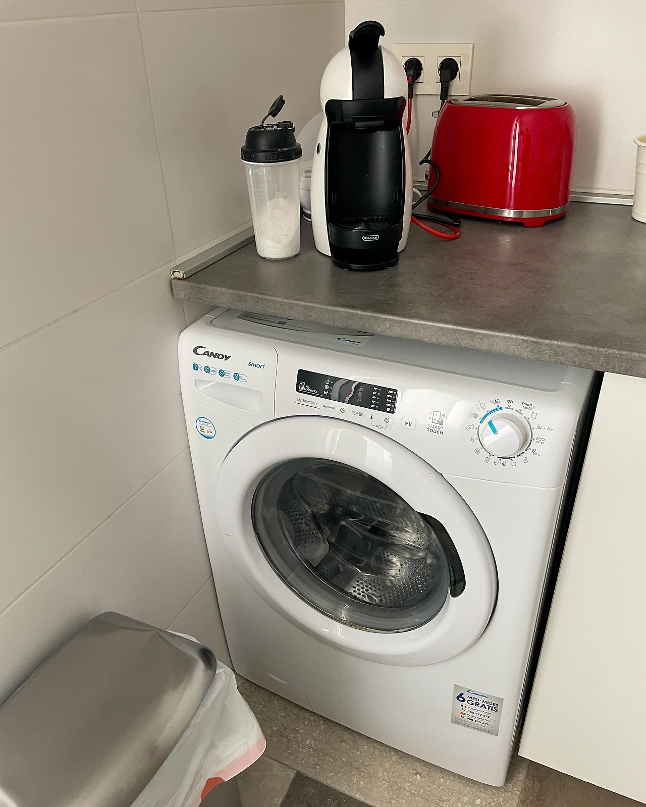 이때는 몰랐는데 알베르게에서 세탁기 무료 사용은 거의 없다고 보면 된다. 세탁기는 4유로, 건조기도 4유로 정도 해서 빨래를 모아서 비용을 나누기도 한다. 세탁기 위에 셰이커병은 세제인데 저것도 무료로 제공되었다. 돌체구스토 캡슐커피도 많이 있어서 2~3잔 마셨다. 만약 수비리에 또 간다면 숙소는 주저 없이 잘디코를 선택할 것이다.