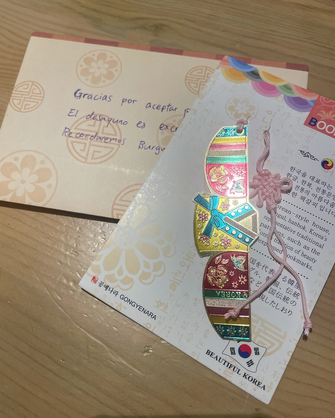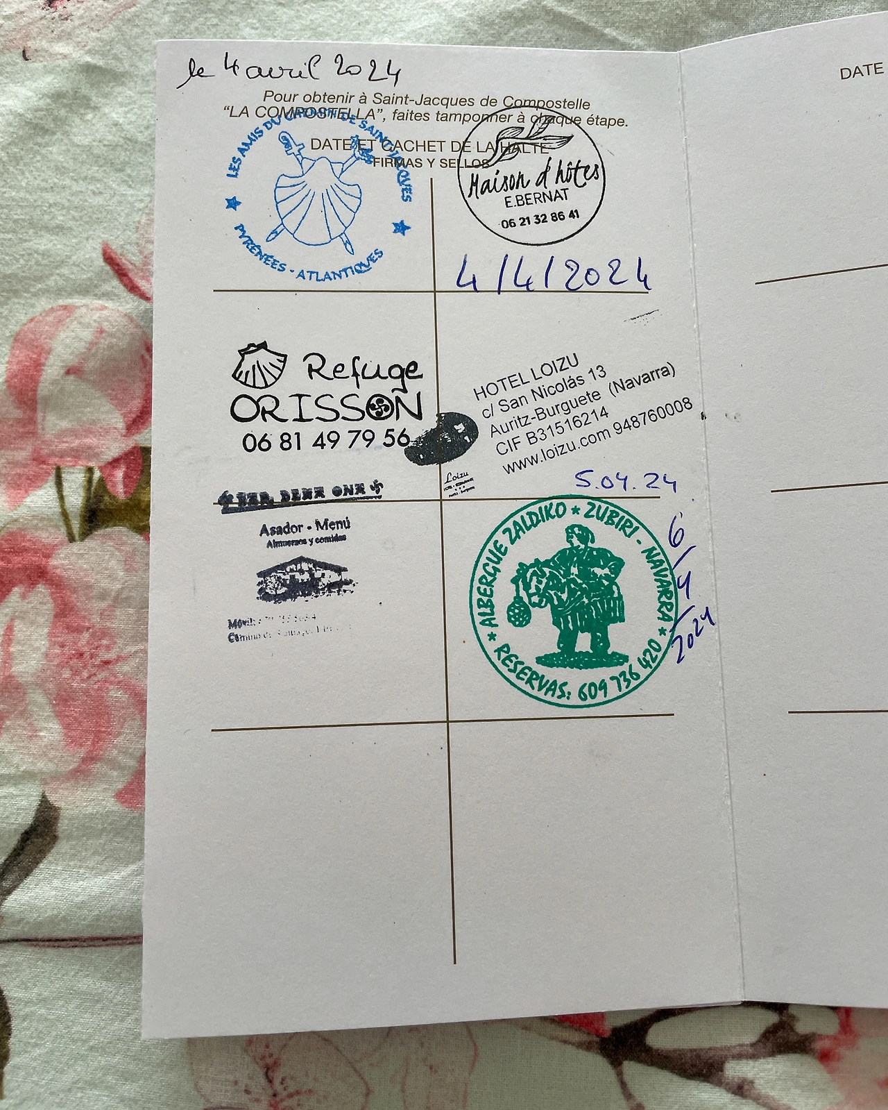 펫프렌들리 숙소여도 식당은 출입 금지라 루카는 방에서 기다리고 있었다. 햄&치즈 냄새를 맡고 눈빛이 초롱초롱하다. 강아지랑 다니면 순례자들이 한 번이라도 더 말을 걸어주고 더 쉽게 기억해 준다. 작은 선물이라도 하고 싶은 상황이 있을듯해서 책갈피(개당 1200원)를 10개 챙겨 왔다. 내가 갖고 다니기에도 받는 분들 입장에서도 부담되지 않는 무게다. 첫 책갈피 선물은 호텔로이수에 남겼다.