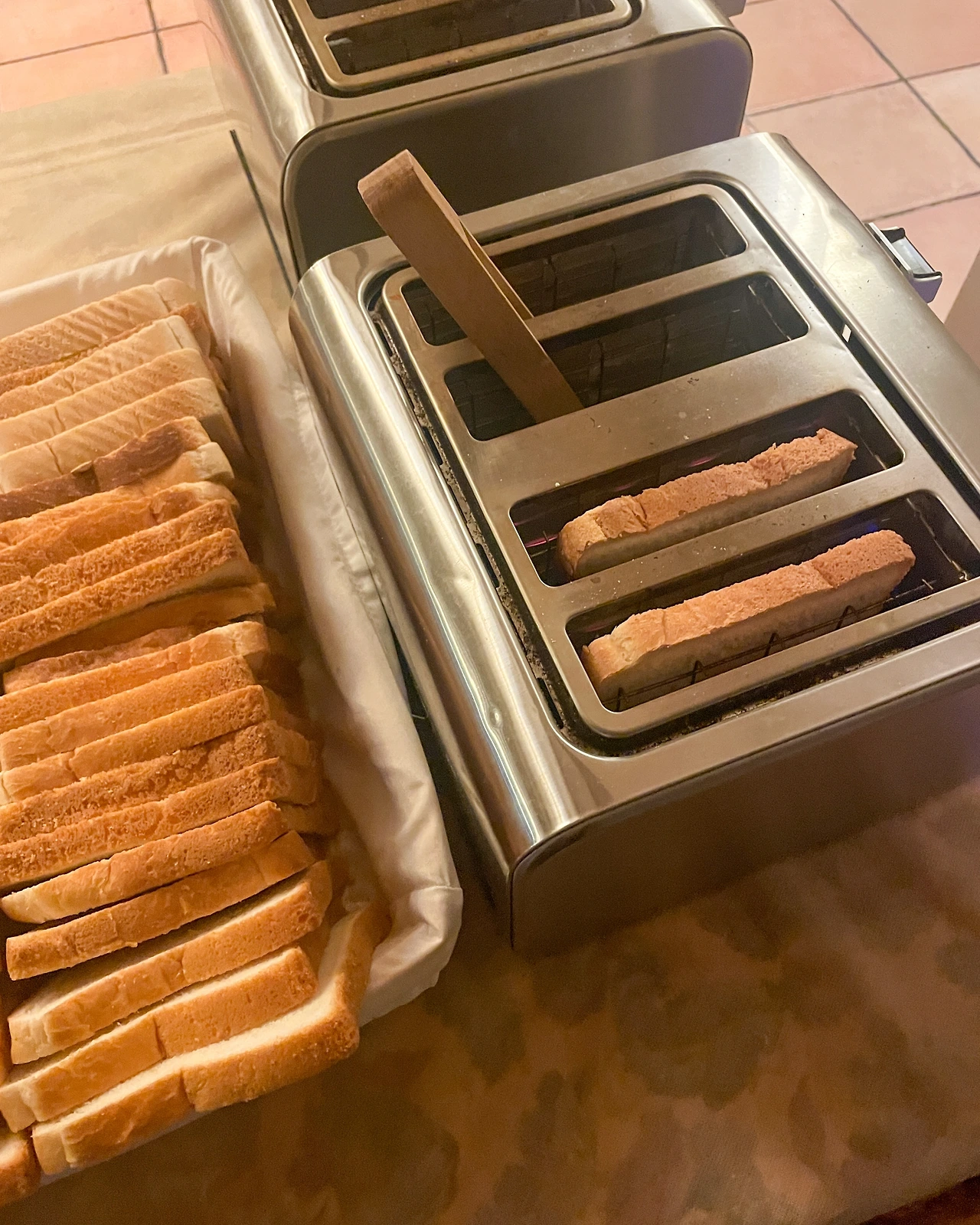피레네산맥을 넘은 다음 날이니 조식을 먹어줘야 하지 않을까? 호텔에 체크인할 때 조식 추가 여부를 물어보셔서 괜찮다고 했더니 반값 제안을 받아서 한번 먹어보기로 했다. €5 조식 뷔페는 흔치 않아서 패스하면 아쉬울 것 같았다. 따로 카페를 찾지 않아도 카페인 수혈을 할 수 있고, 루카 챙겨줄 햄&치즈가 넘쳐났다.