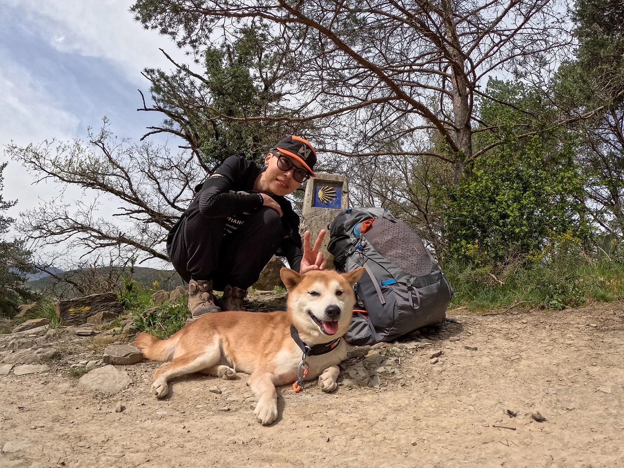 목적지가 보일 때쯤 찍은 사진이라 그런가 표정이 밝다. 루카가 현실과 다르게 대형견처럼 나왔지만. 순례자 중에는 힘들게 걷는 분들도 계시고, 혹은 무언가 생각에 잠겨 보이는 분들도 있다. 사진을 부탁해도 흔쾌히 들어주시겠지만 대부분 10초 타이머 설정으로 찍는 편이다.