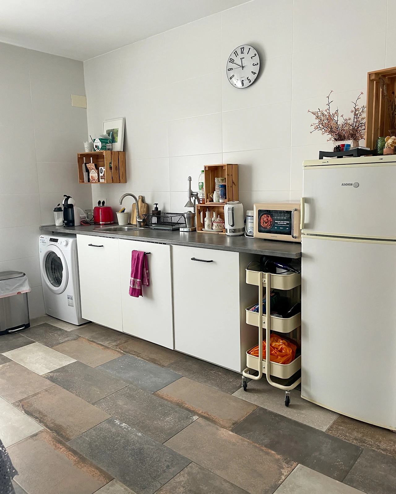 안내해 주시는 분이 서툰 발음이지만 '안녕하세요'로 인사를 건네셨다. 거실 책장에는 한국어로 된 '중학영문법'과 '디딤돌 초등수학'이 보였다. 여기저기 구경하던 중 세탁기 종료음에 후다닥 (다른 분이 차지하기 전에) 빨래를 돌리러 간다.